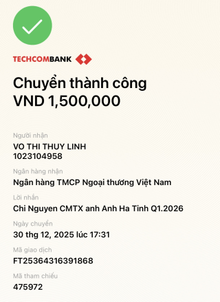 - [21/01/2020]: TV locnguyen nhận CM gia đình anh Ánh 500,000đ/tháng từ t1 đến t3/2020