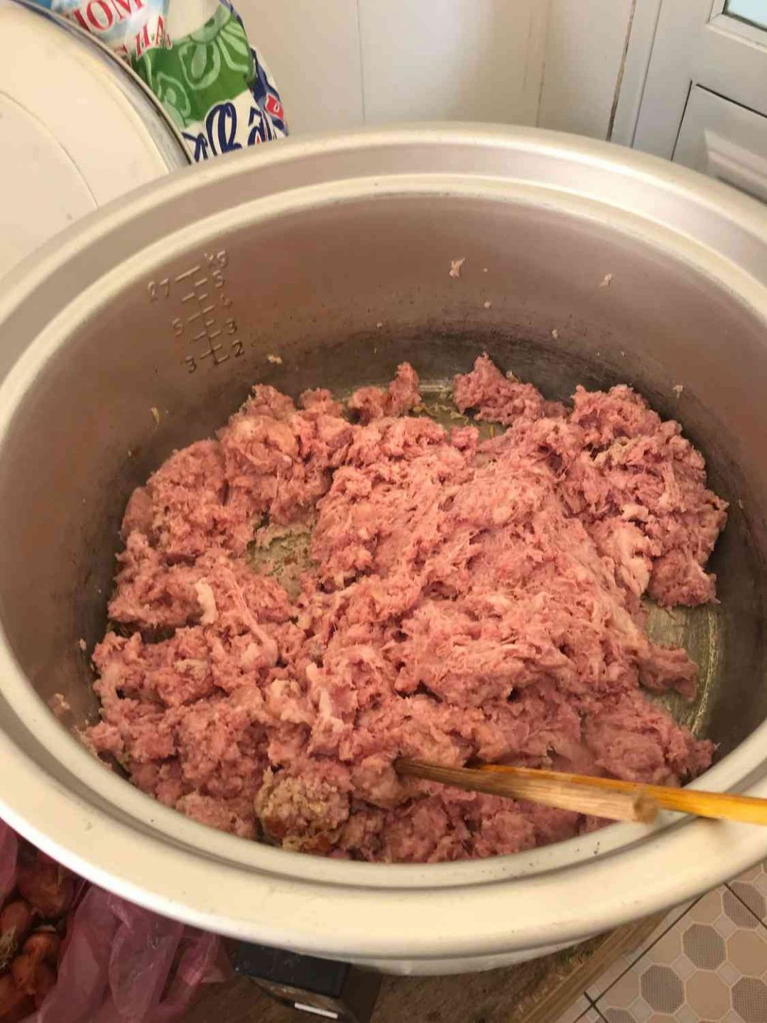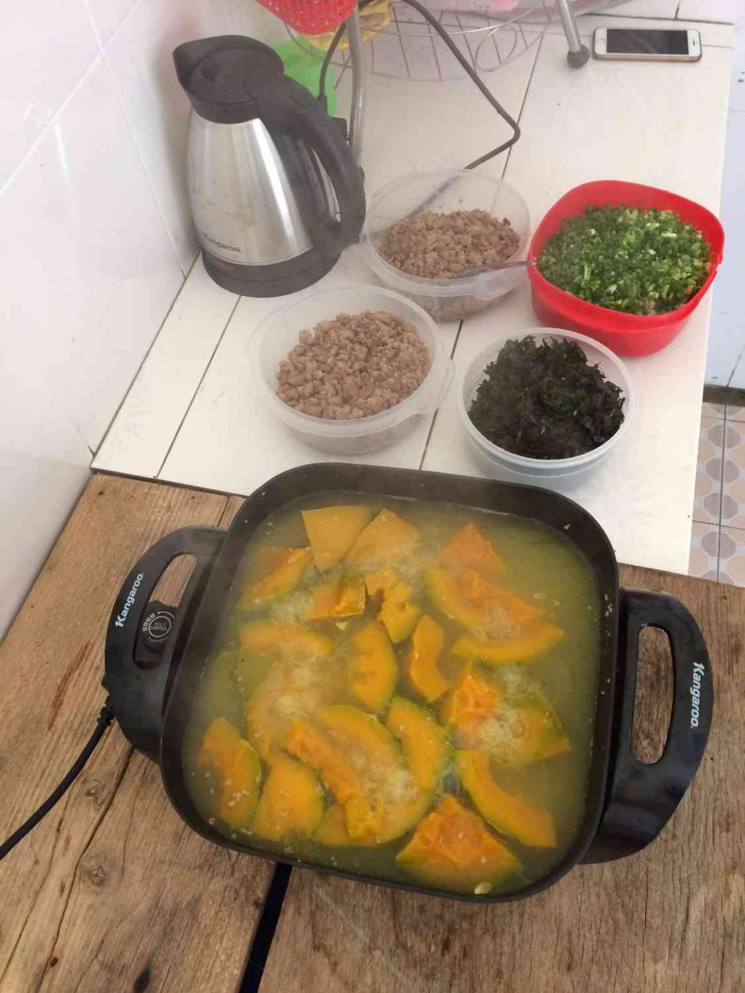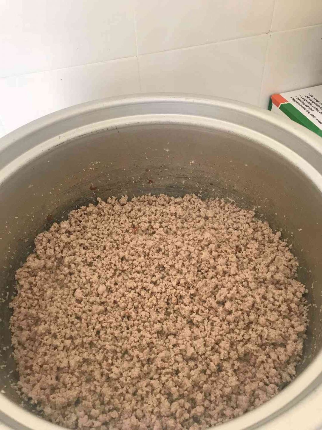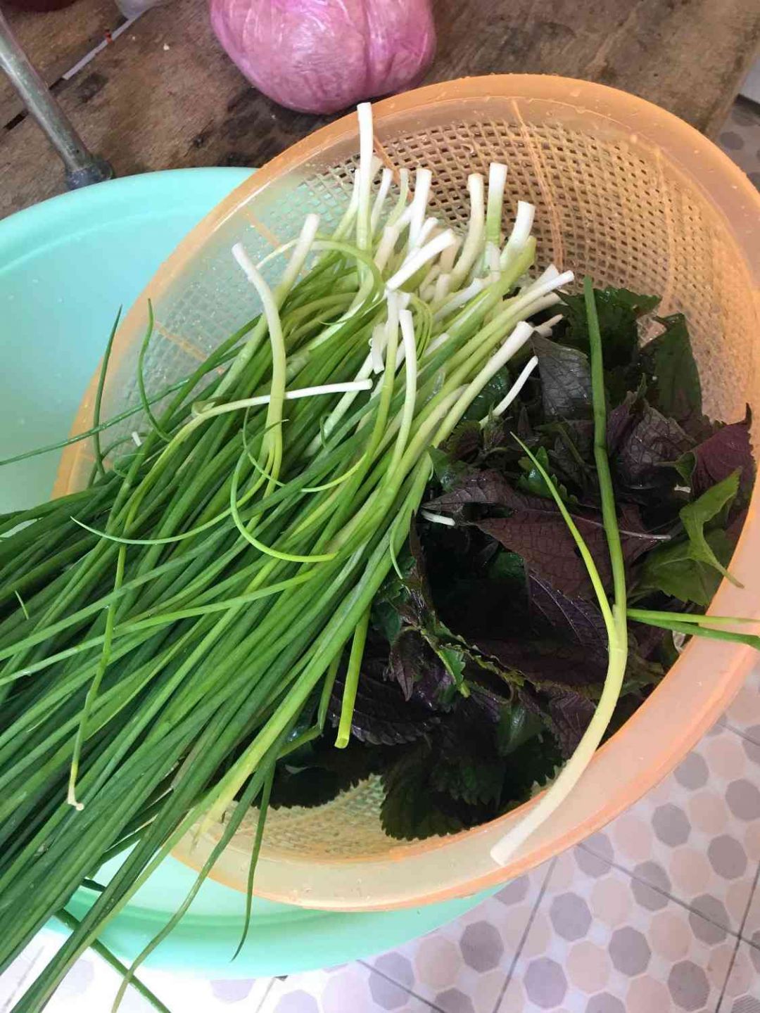 Hôm nay Nồi cháo có hành và tía tô nhìn ngon hẳn. Thịt vẫn xào lên phải không các bạn?