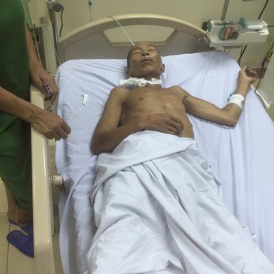 Anh nhập viện đến nay đã 7 ngày, 2 ngày nằm ở bệnh viện Thạch Hà và chuyển tuyến lên bệnh viện Tỉnh 5 ngày rồi, hiện anh đang nằm điều trị tại phòng cấp cứu số 2, khoa nội, bệnh viện tỉnh Hà Tĩnh.