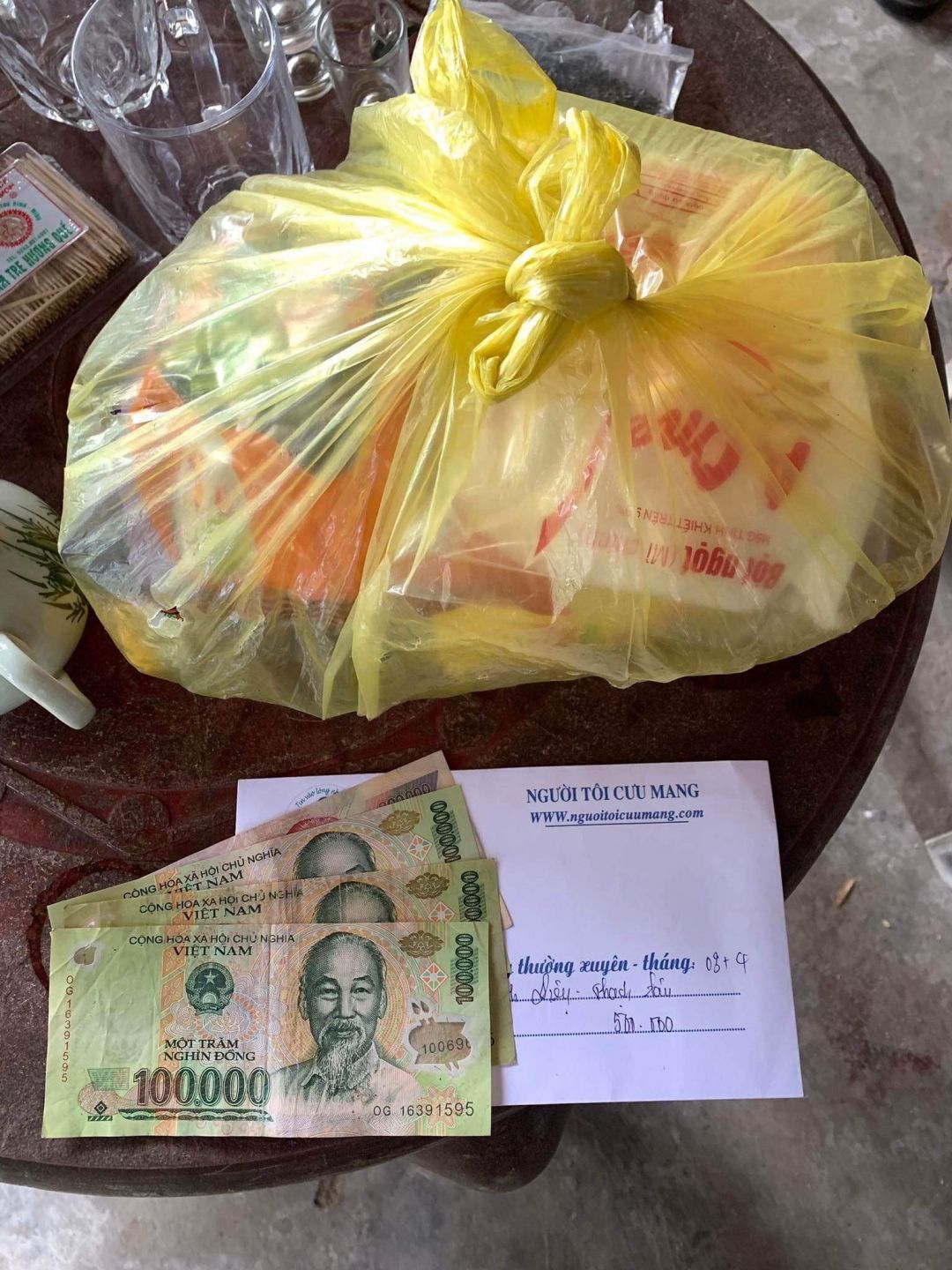 2) Hình ảnh chụp với các hoàn cảnh phải thấy rõ số tiền, số nhu yếu phẩm được trao.