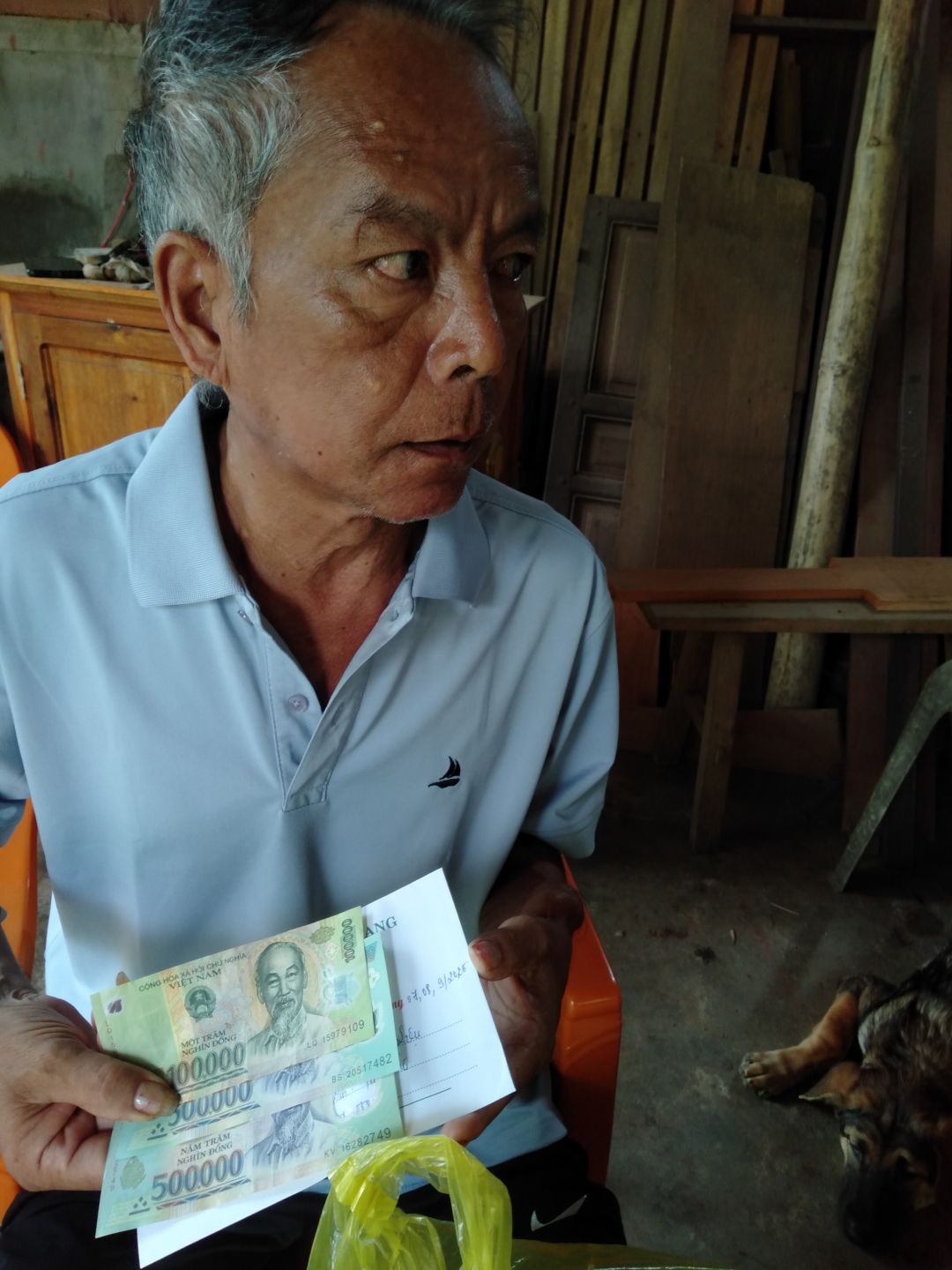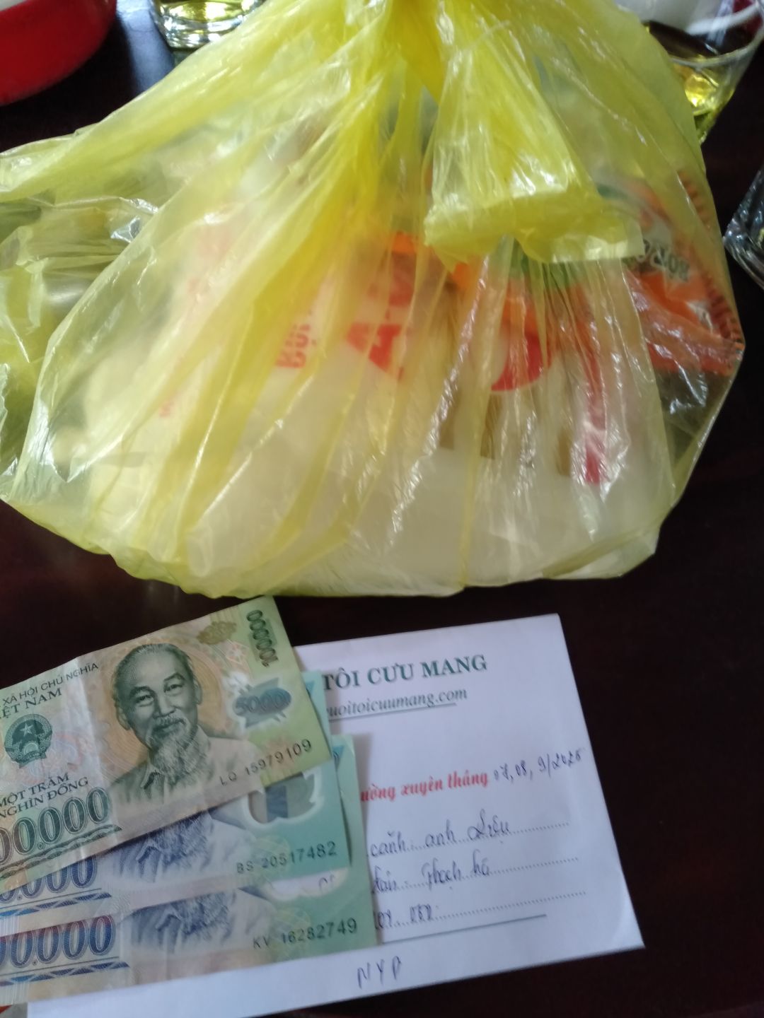 Nhóm HT đã tới thăm và trao tiền cmktx của chị NVH cho anh Liêu. 2tháng 1,600k.