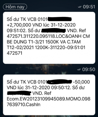 Gia đình Lộc và Oanh xin được tiếp tục đồng hành cùng gia đình chị Tâm 400K/tháng từ t12/2020 - t02/2021. Bên mình sẽ sớm ck cho trungkienbeo@gmail.com