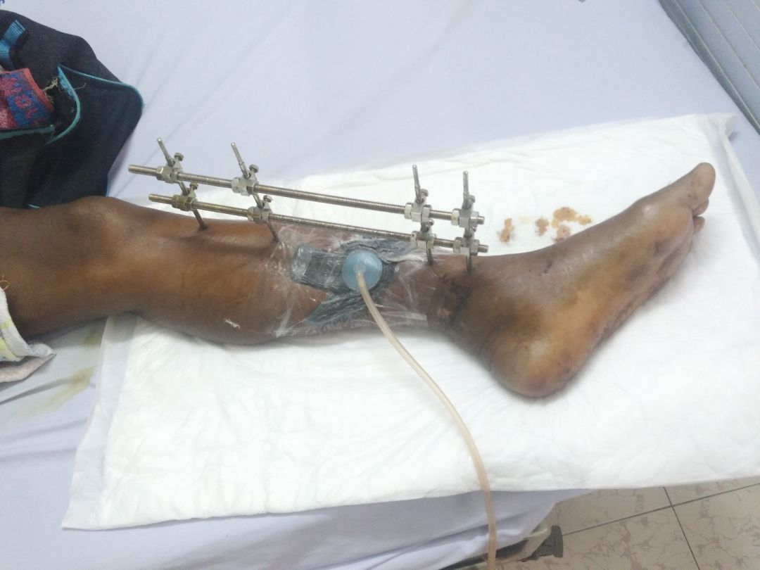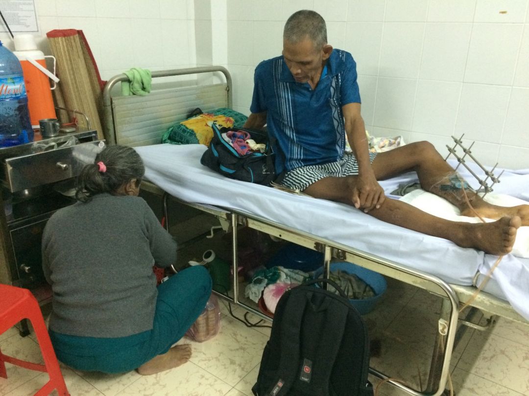 Gia đình nghèo khó + tại nạn ập đến, mỗi đứa con chú ven vét mỗi người 1 đến 2 triệu để chú chữa bệnh! đến nay tiền đã hết, sức đã cạn! Chú được chuyển đến bệnh viện Phục Hồi Chức Năng ở Q8 đề điều trị và phẫu thuật ghép da. Mới đây chú nộp 8 triệu cho một ca phẫu thuật đặt ống hút mủ. Tiền không có để tiếp tục điều trị chú nghĩ quẩn muốn bác sỹ tháo nẹp sắt ra và đi về nhà!