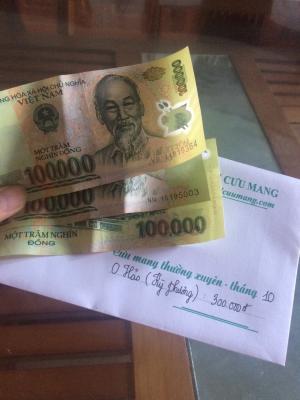 - [28/10/2019]:banbe6x duyệt tiếp tục xuất quỹ để CMTX Gia đình O Hảo 300,000đ/tháng từ tháng 11/2019 đến hết tháng 1/2020[banbe6x]