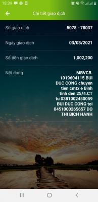 Đã chuyển 1tr vào tk của B Hạnh. Cảm ơn