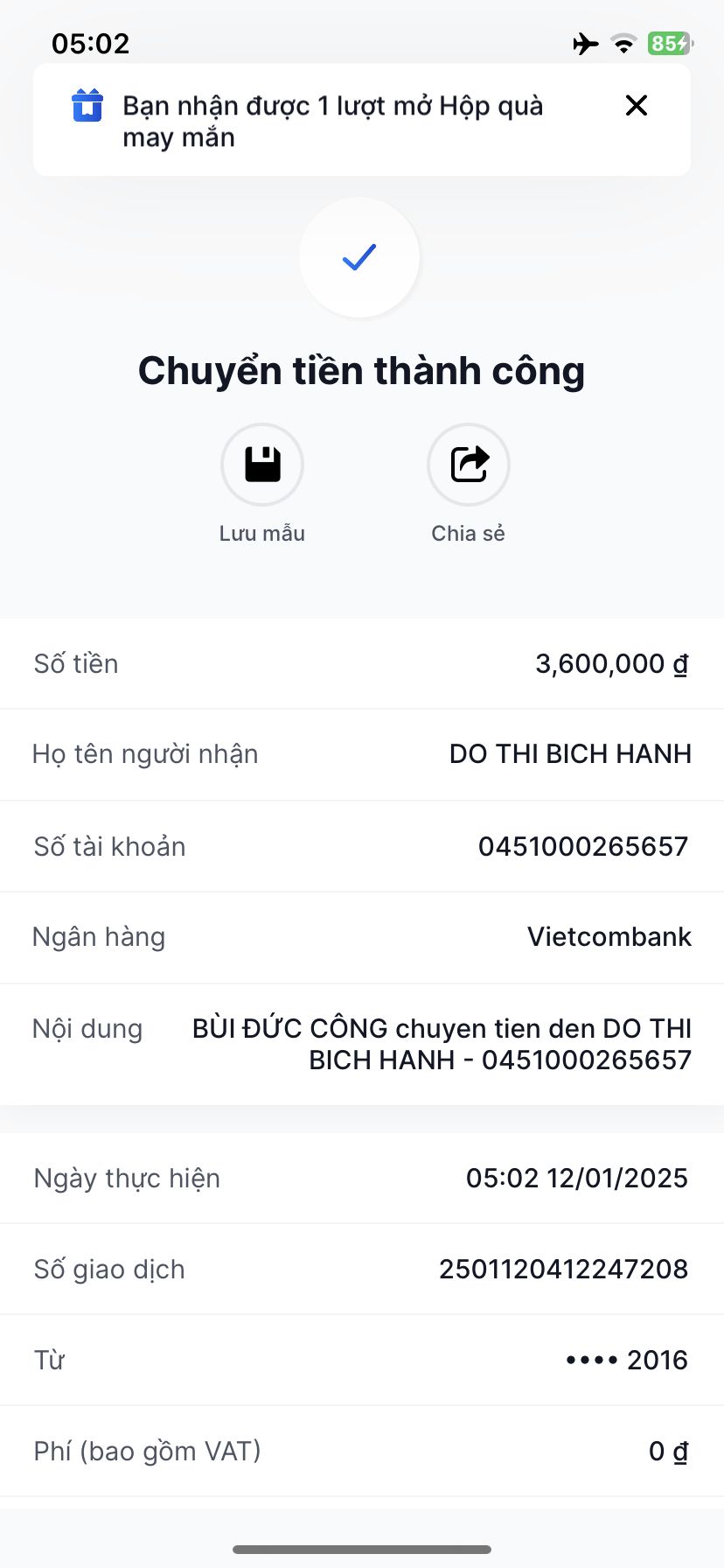 HBL đã nhận được 3tr bạn gửi CMTX T8,9,10,11,12/2025 cho hc này. HBL sẽ đến trao trong T12 này nhé !