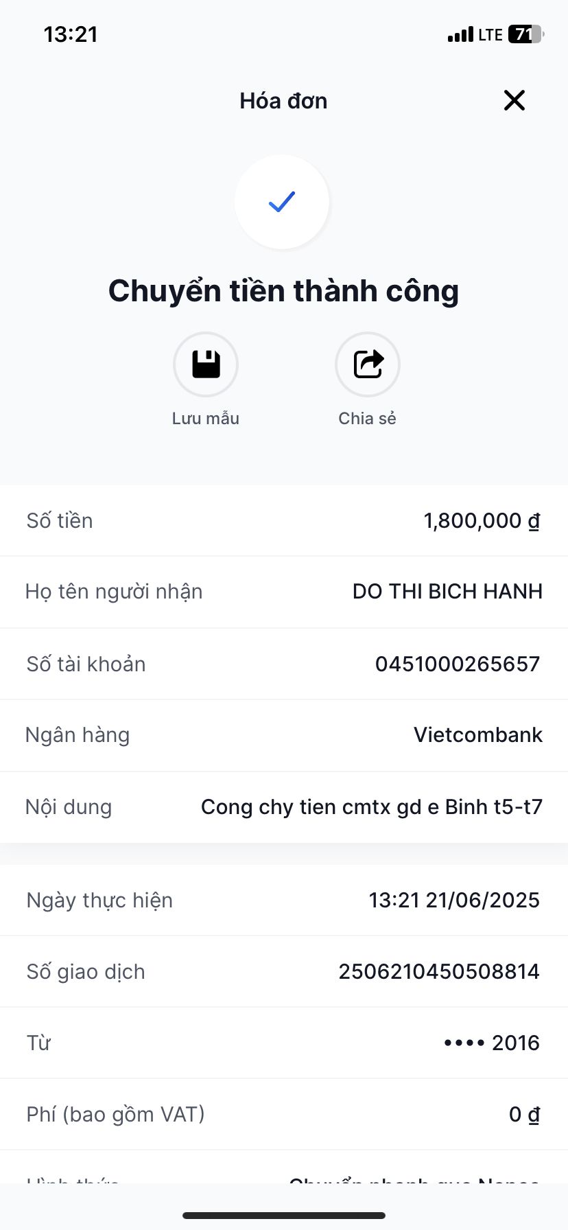 HBL vừa nhận được tiền CMTX từ T8/2024 đến hết T01/2025 của bạn Công Bùi💕