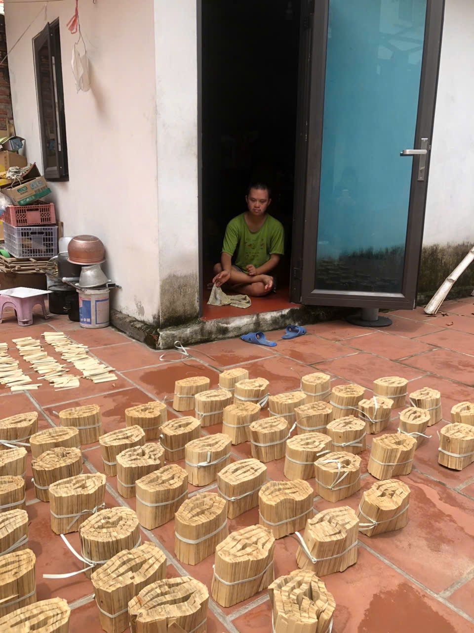 Lúc nào HBL đến cũng thấy chị đang ngồi làm việc. Chị kể là gói được 1 chồng hàng ( như hình ) thì tiền công là 20k :(. Chị bảo: làm cho vui là chính, thêm được đồng nào đỡ đồng đó.