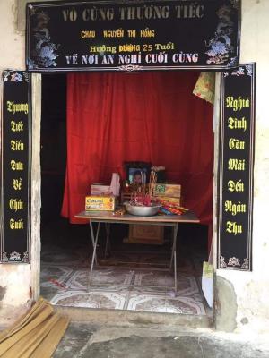 Nhìn người vợ khắc khổ, ngồi khóc khi mọi người hỏi về gia cảnh. Chị Phúc- vợ anh Thìn bị động kinh không được bình thường, chị cứ bật khóc, nghĩ về đứa con gái vừa mất, mà mẹ không ở nhà đưa tang được. Lễ tang của con gái là Nguyễn Thị Hồng, Sn 1994, chỉ biết trông cậy nhờ vào anh em, họ hàng đưa con ra đồng chôn cất trong chiều nay (9/8) mà vắng bóng mẹ, cha.
