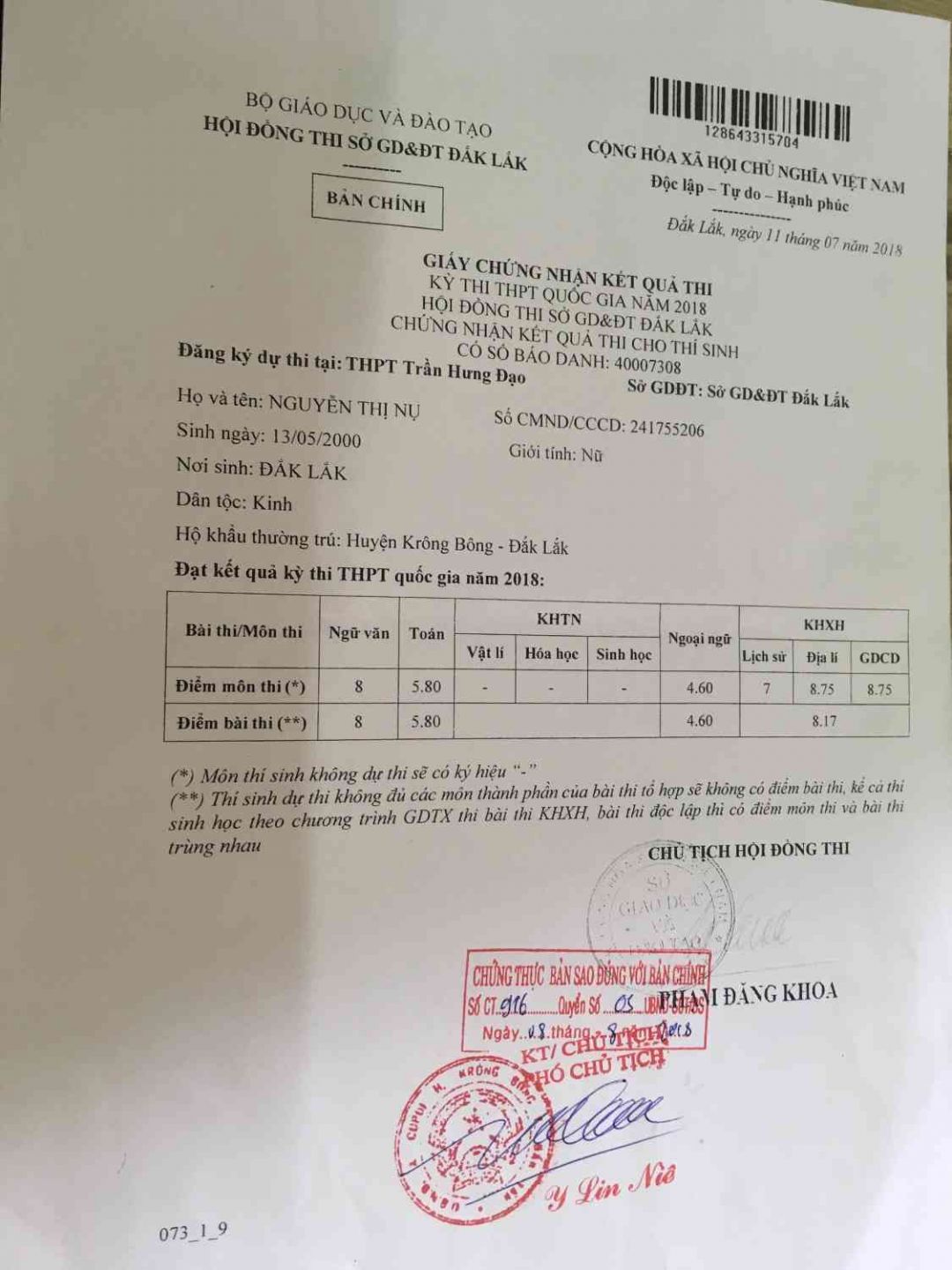 6x cập nhật hoá đơn đóng tiền học phí HK1 của năm thứ nhất của cháu Nụ