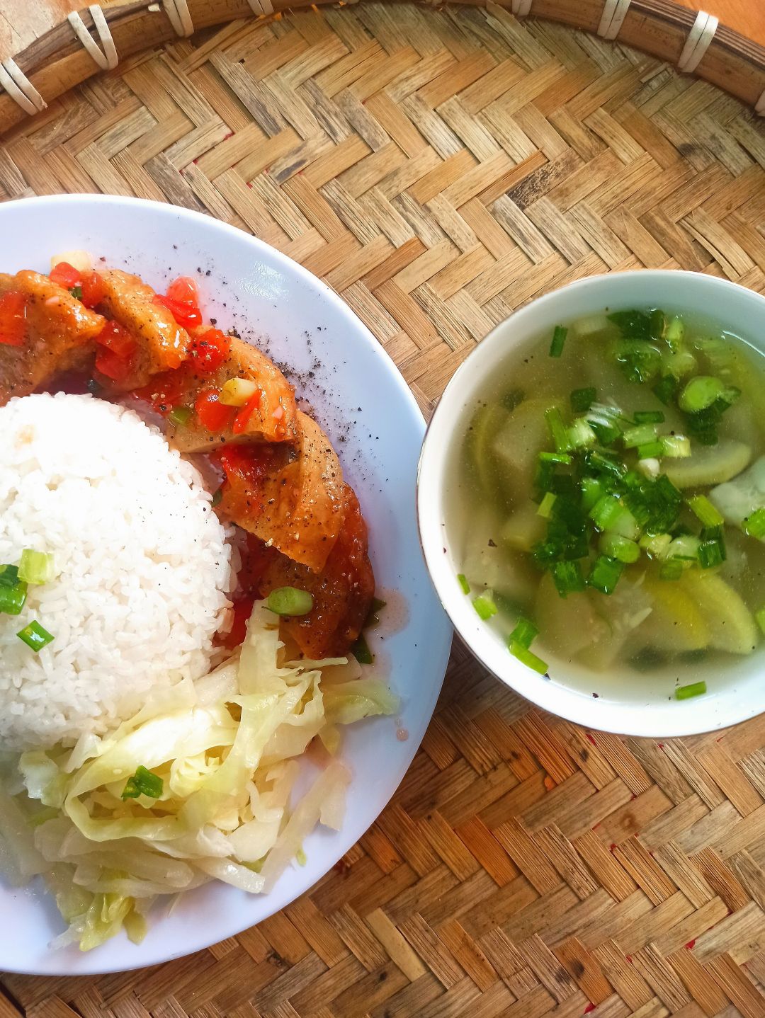 + Thứ 4 (12/4): 91 suất (sườn chay sốt ngọt, canh rau củ, rau muống xào).