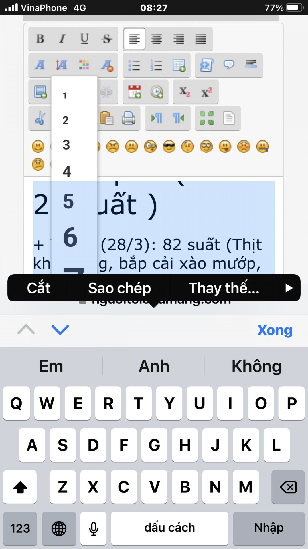 Bạn Hoàng lưu ý giúp cho cả Nhà khi đăng bài, viết gõ thì mặc định size chữ diễn đàn đa cài sẵn : nhưng khi bạn tùy chỉnh hoặc coppy dán từ nền tảng khác thì size chữ sẽ theo tuỳ chỉnh hoặc mặc định coppy. Bài của bạn chữ hơi lớn khi coppy (có thể từ bản viết nháp trên trình soạn thảo khác) làm kéo dài topic nếu duyệt trên smarphone. Bạn nên để lại chữ size 2 trên trình soạn thảo diễn đàn như hình minh họa.