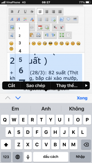 Bạn Hoàng lưu ý giúp cho cả Nhà khi đăng bài, viết gõ thì mặc định size chữ diễn đàn đa cài sẵn : nhưng khi bạn tùy chỉnh hoặc coppy dán từ nền tảng khác thì size chữ sẽ theo tuỳ chỉnh hoặc mặc định coppy. Bài của bạn chữ hơi lớn khi coppy (có thể từ bản viết nháp trên trình soạn thảo khác) làm kéo dài topic nếu duyệt trên smarphone. Bạn nên để lại chữ size 2 trên trình soạn thảo diễn đàn như hình minh họa.