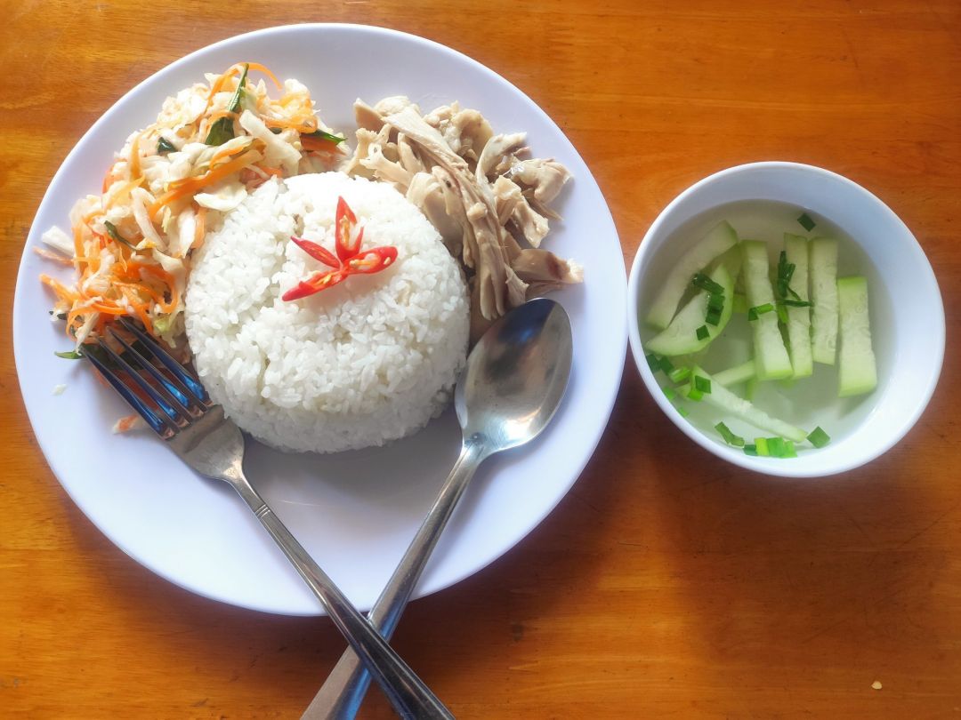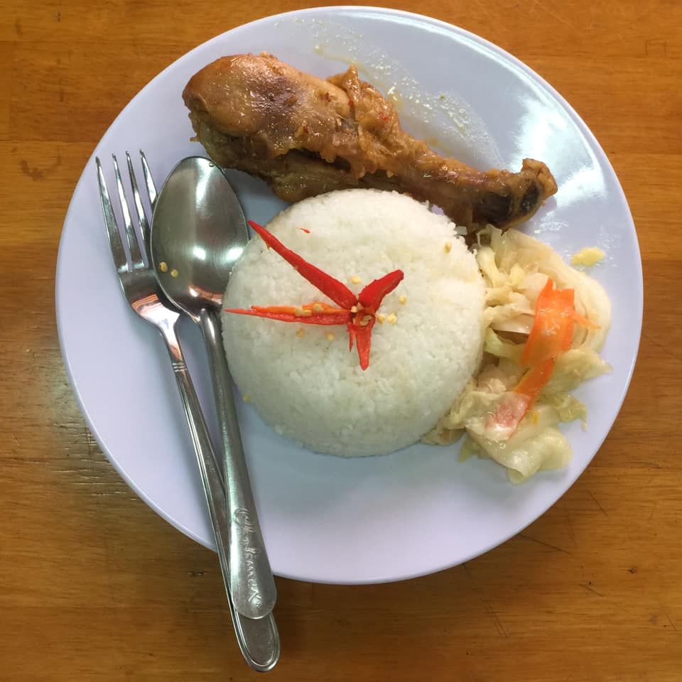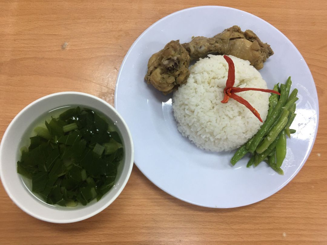 +) Thứ tư: 100 suất thu được 200.000 vnđ (Cơm gà kho xả, canh cải và mướp xào) .
