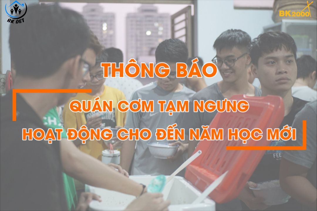 Sắp tới, đại học Bách Khoa bước vào tháng thi cuối kì, nên từ tuần sau quán cơm sẽ tạm dừng hoạt động. Tuần này tụi em vẫn hoạt động bình thường, và  dự kiến sẽ hoạt động lại vào đầu tháng 2 năm 2020,...
