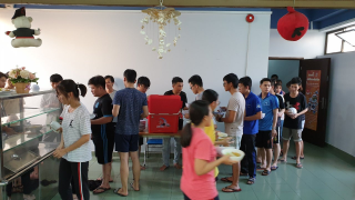 Thứ tư: 74 suất thu được 148.000 vnđ (Số tiền để nấu ăn cho bữa này gồm thứ 4 (100.000), thứ 5 (136.000)  tuần trước, và thứ 3 tuần này (142.000) tổng 378.000 vnđ + 200.000 vnđ trích từ quỹ Quán cơm tình bạn KTX chi để nấu thịt kho trứng cút, canh súp hầm xương gà).