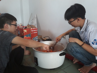 Cũng như thường lệ, số tiền thu được từ phát cơm 2000đ vào thứ tư, thứ năm của tuần trước và thứ ba tuần này (tổng 444.000 vnđ) và tiền từ quỹ hội cựu sinh viên Bách Khoa sẽ gom lại nấu ăn cho các bạn vào thứ tư.