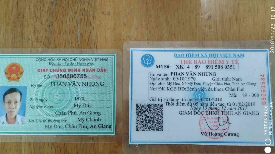 thì Chú tên là Phạm Văn Nhung sinh năm 1970, hiện đang làm phó ấp ở xã Mỹ Đức huyện Châu Phú, An Giang. Cô với chú có một người con trai hiện đang học lớp 10. Chú bị bệnh tim đã lâu, nhịp tim cứ đập nhanh, nhưng cũng vì không đủ khả năng nên cứ lướt qua đến kì này thì lướt qua không nổi, Chú là phó ấp nên một tháng được nhận 2,200,000 đ tiền lương nhà nước. Cô Hương thì làm nội trợ,  rồi ở nhà cô nhận lột tỏi, làm vài việc lặt vặt phụ thêm, một ngày được 40,000 - 45,000đ coi như là tiền mua đồ ăn sáng và cho con đi học. Khi đi bà con hàng xóm gom góp lại được 3,000,000đ để giúp đỡ gia đình Chú.