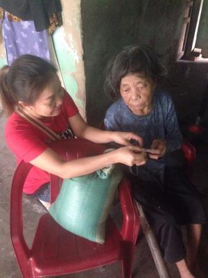 Tháng này cụ chỉ nhận được nhu yếu phẩm. Tiền cưu mang cụ, anh Tùng đã nhận CMTX từ tháng 9, nhưng phía người trung chuyển của Nhóm Hà Tĩnh chưa nhận được, nên tháng này chưa trao tiền được cho cụ.