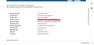 TG đã chuyển 600.000 CMTX Cụ Nhường T4, 5,6/2020 cho Vân Kiêu Sa. Vân xác nhận giùm nhé./.