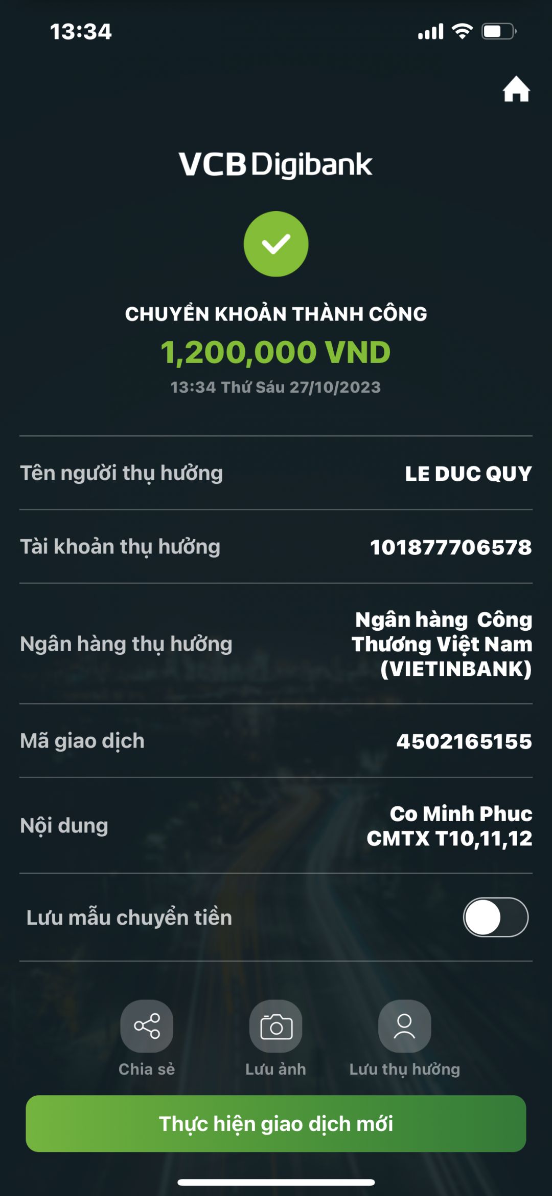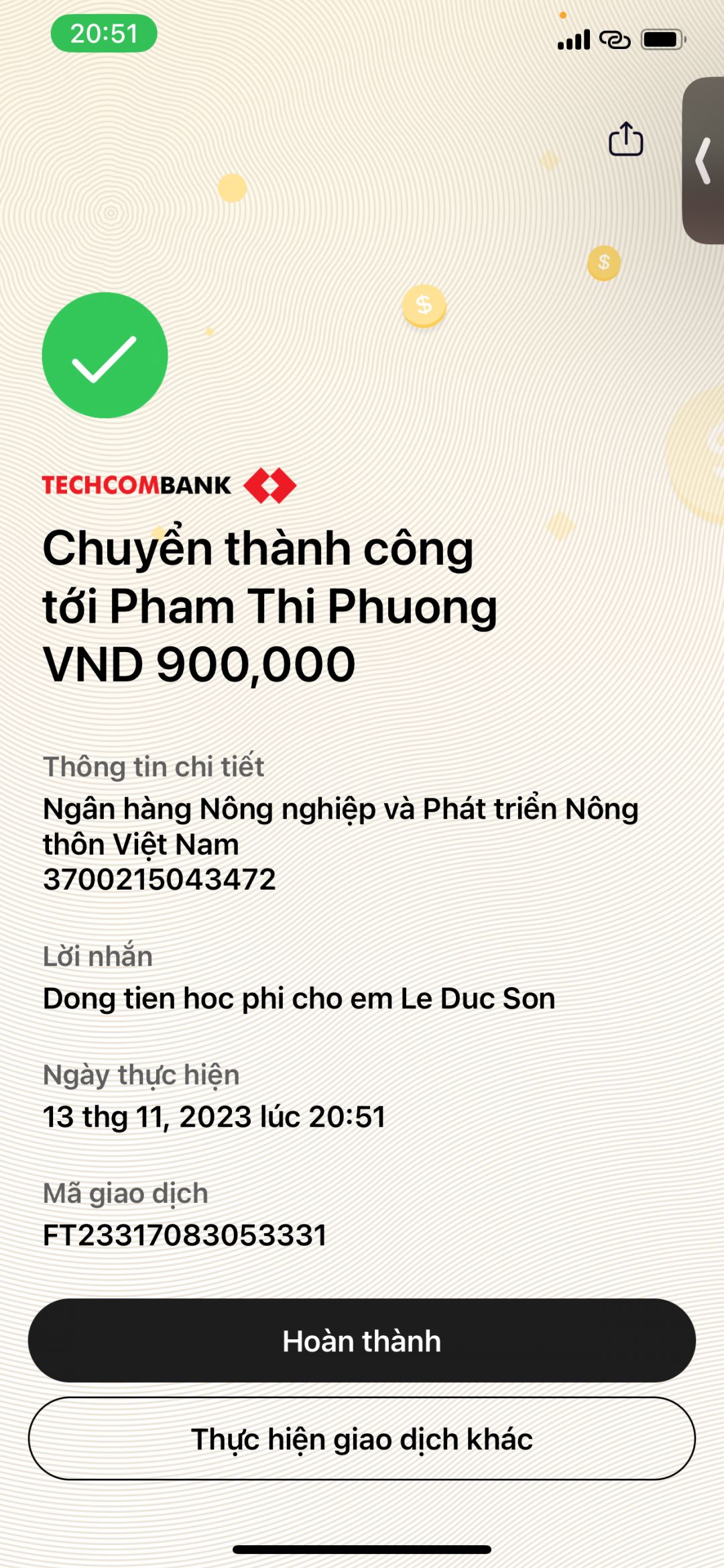 Con xin chân thành cảm ơn các mạnh thường quân đã giúp đỡ gia đình cháu và bác LTMP. Cháu đã nhận được số tiền 1.200.000  của tháng 10-11-12/2023 từ cô Minh Phúc rồi ạ, cháu cảm ơn những lời chúc và động viên của Bác để cháu cố gắng học tập và rèn luyện tại Sài Gòn.