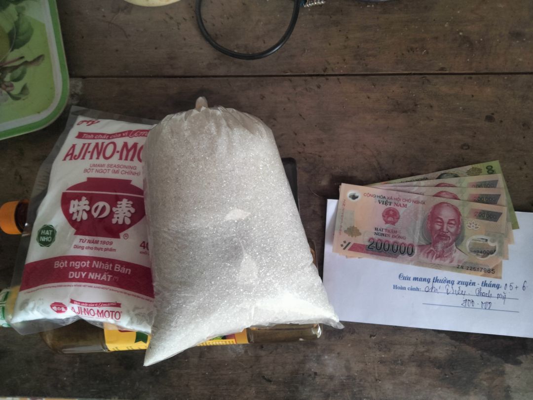Hôm nay ngày 26/06. Thùy Linh và Thành viên Nguyễn Quý đã đến thăm và trao CMTX tháng 5&6 cho hoàn cảnh Gì Triều, Thạch Mỹ. Tiền ; 700k, Nhu yếu phẩm gồm: Dầu ăn, Nước mắm, Mì Chính, Đường