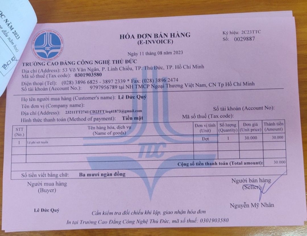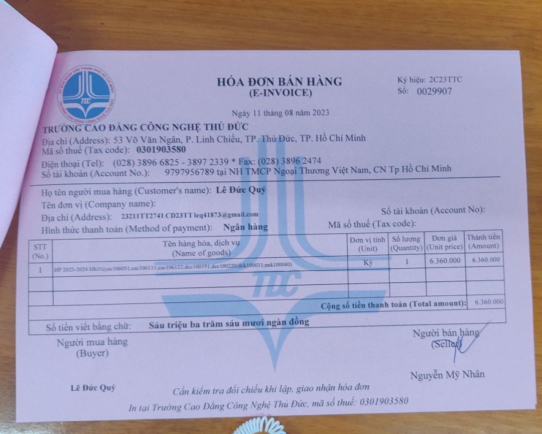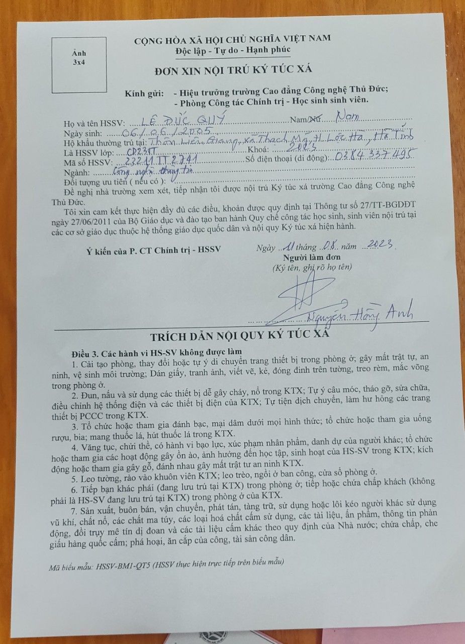 Cháu Quý đã nhờ 6x đăng ký nhập học tại trường Cao đẳng nghề Thủ Đức.