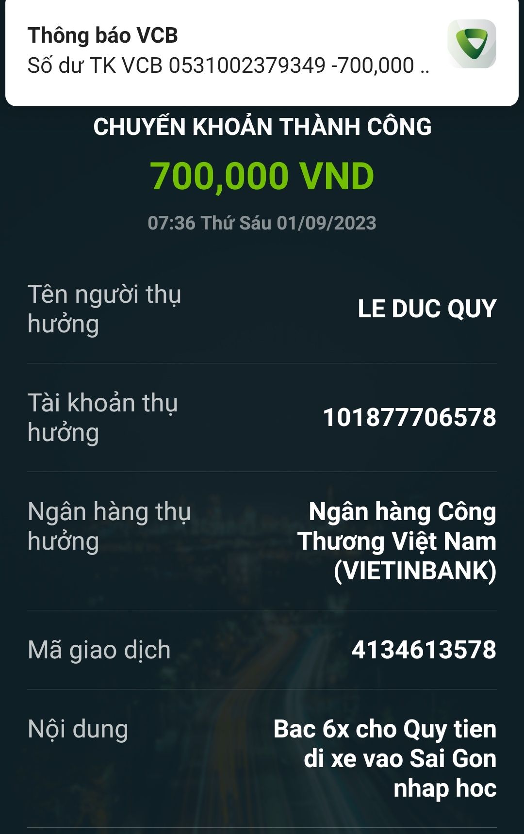 Cuối tháng 8/2023 Quý sẽ vào Sài Gòn và 6x sẽ giúp cháu ấy tiền xe các bạn nhé.