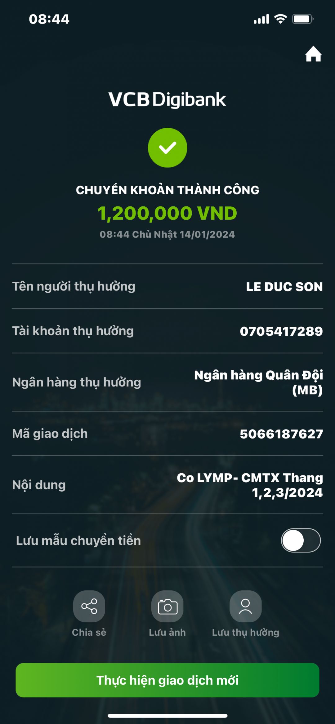 Cmtx tháng 01,2,3/2024 số tiền 1.200.000₫( VKS đã chuyễn)