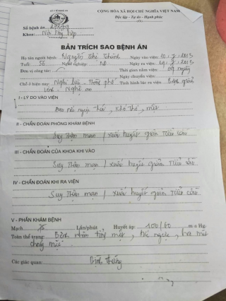 Bà sinh ra trong gia đình có 1 người con, bố mẹ của bà mất sớm, hiện tại bà sống đơn thân một mình, không có anh em, không nơi nương tựa và không có nguồn trợ cấp hàng tháng nào. Cuộc sống của bà đều nhờ cả vào bà con láng giềng giúp đỡ sống qua ngày. Bản thân bà mang trong người căn bệnh xuất huyết giảm tiểu cầu, suy thận mãn tính đã 9 năm nay. Sức khỏe bà nay đã già yếu lại không có nguồn thu nhập nào cộng thêm không thể chi trả chi phí điều trị thăm khám bệnh hàng tháng để duy không cho bệnh nặng thêm.