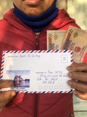 Trungkienbeo xin cập nhật trao quà CMTX tháng 3/2021 tới hoàn cảnh bà Thành, suất quà gồm có 400.000đ tiền mặt ạ.