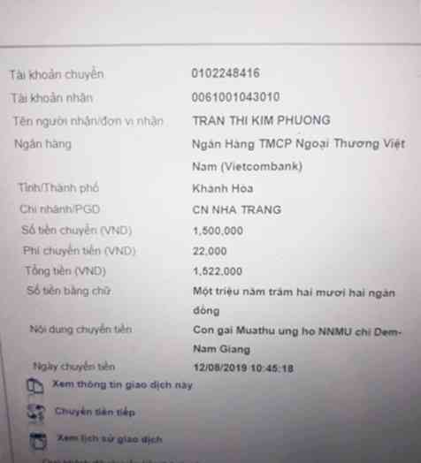 VUI VUI VUI!  Sáng nay, 12-8, cháu Sunny-con gái thành viên Muathu đã nhờ mẹ chuyển đến NTCM 1.500.000đồng (một triệu năm trăm ngàn đồng) để ủng hộ xây dựng ngôi nhà cho chị Đem ở Nam Giang.