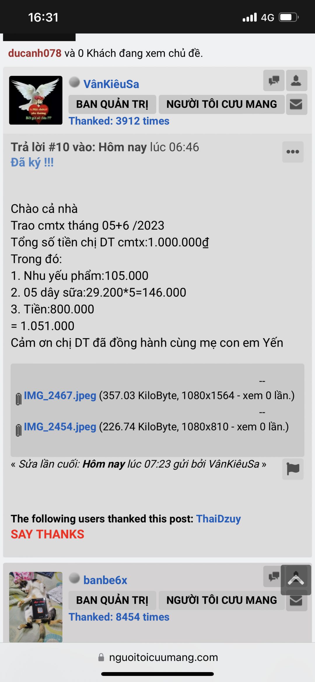 2) Hình ảnh chụp với các hoàn cảnh phải thấy rõ số tiền, số nhu yếu phẩm được trao.