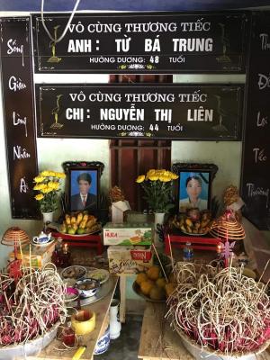 Tháng 04/2018 bố chị bị tai biến, do không được đưa đi bệnh viện kịp thời nên tháng 06/2018 ông đã qua đời. Nổi đau mất chồng mất cha chưa kịp nguôi ngoai thì tai hoạ lại tiếp tục ập xuống cái gia đình nhỏ này. Ngày 14/12 trên đường đi làm thì bị tai nạn giao thông, anh Trung chết ngay tại chỗ, chị Liên bị thương nặng được làng xóm đưa ra BV Việt Đức hà nội, nhưng do bị thương quá nặng chị cũng đã trút hơi thở cuối cùng lúc 08h45 ngày 21/12/2018 để lại mẹ già 84 tuổi và 2 con nhỏ.
