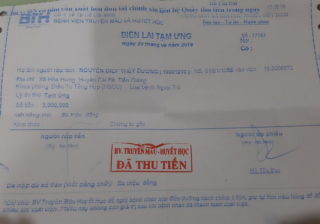 hoàn cảnh chị Dương đang gặp khó khăn về tiền đóng tạm ứng. cũng như không muốn việc điều trị bệnh suy tủy xương của chị Dương bị gián đoạn nên Mai Trâm đề nghị xuất quỹ CMKTX 3 triệu đóng viện phí.