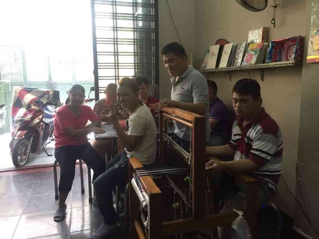 Cơ sở được thành lập đã hơn 10 năm nay, do 3 cô thay phiên nhau phụ trách hỗ trợ công việc. Cơ sở đang dạy nghề dệt cho 18 bạn thiểu năng, có bạn đến từ nhiều quận huyện nằm cách xa nơi này. Buổi sáng, phụ huynh sẽ chở các bạn đến, buổi trưa & buổi xế sẽ được hỗ trợ ăn tại cơ sở.