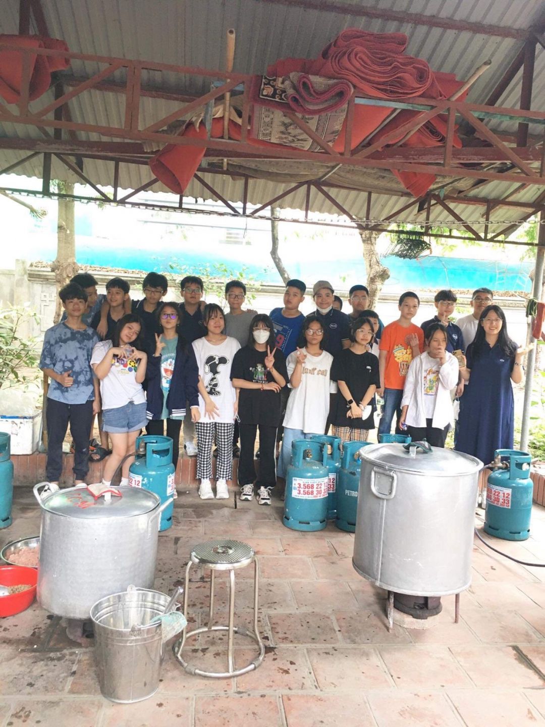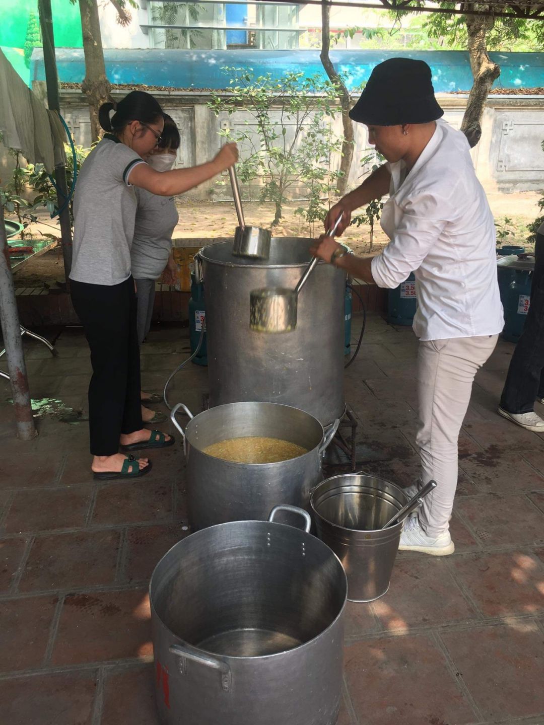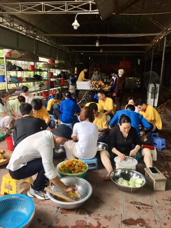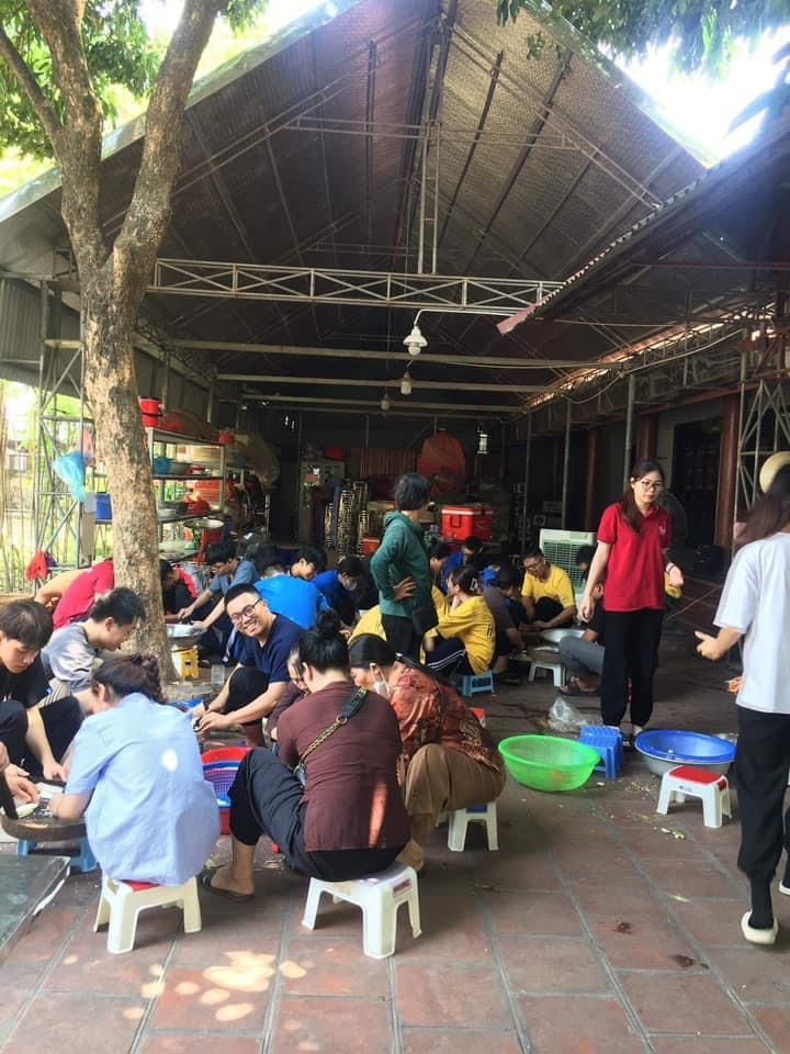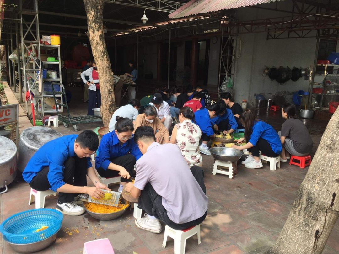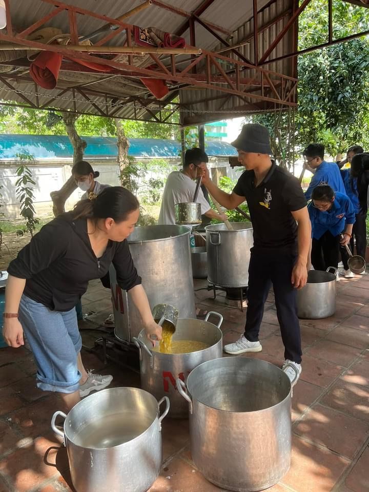 Nắng nóng gần 40 độ nhưng nồi soup vẫn đông đủ các TNV tham gia, soup ngô gà thơm ngon đến giọt cuối cùng.