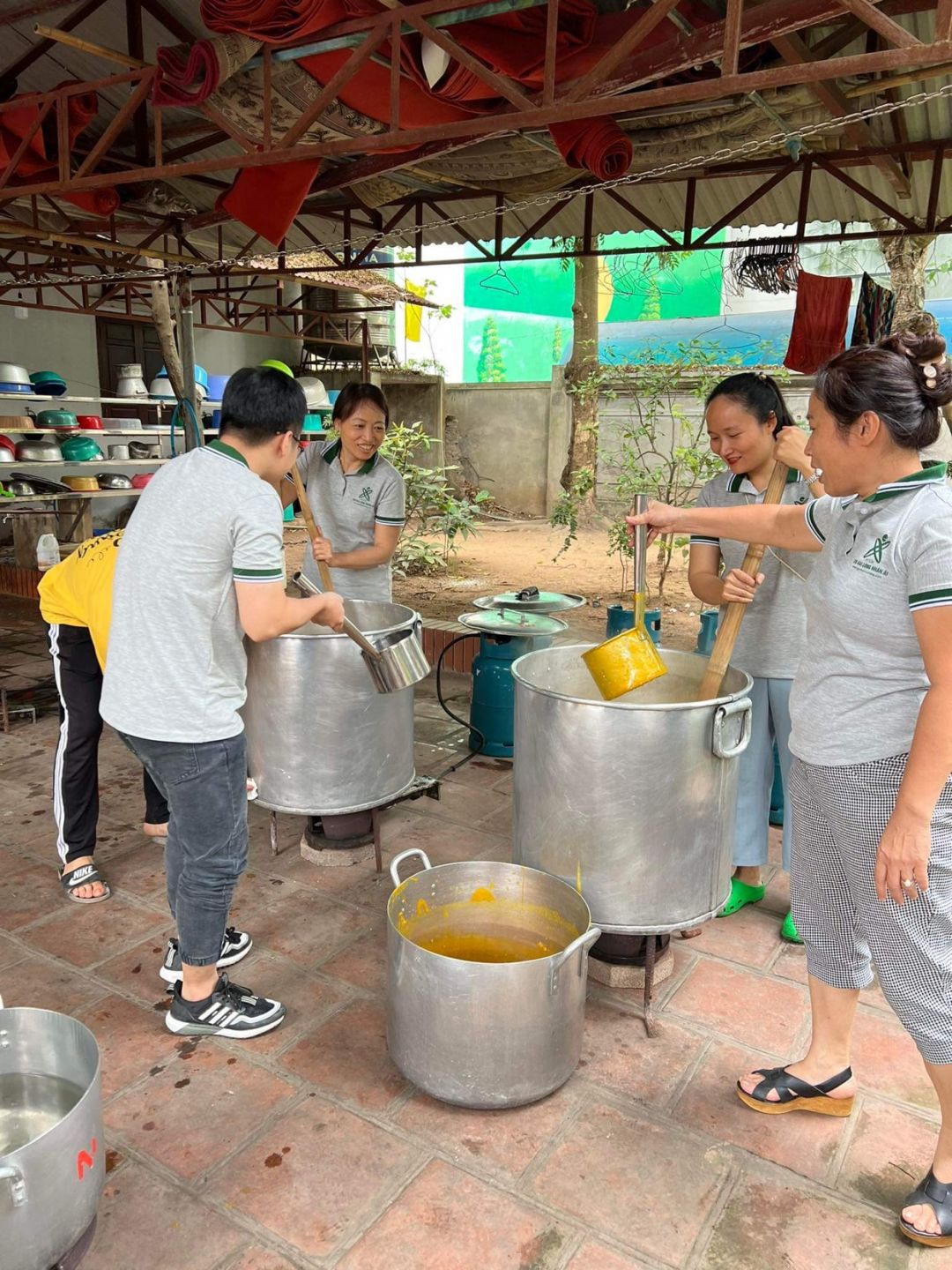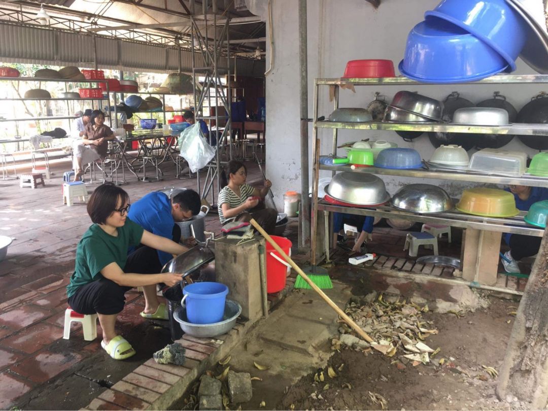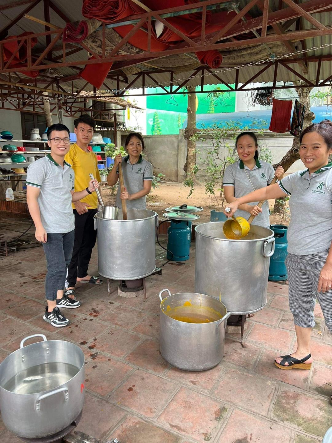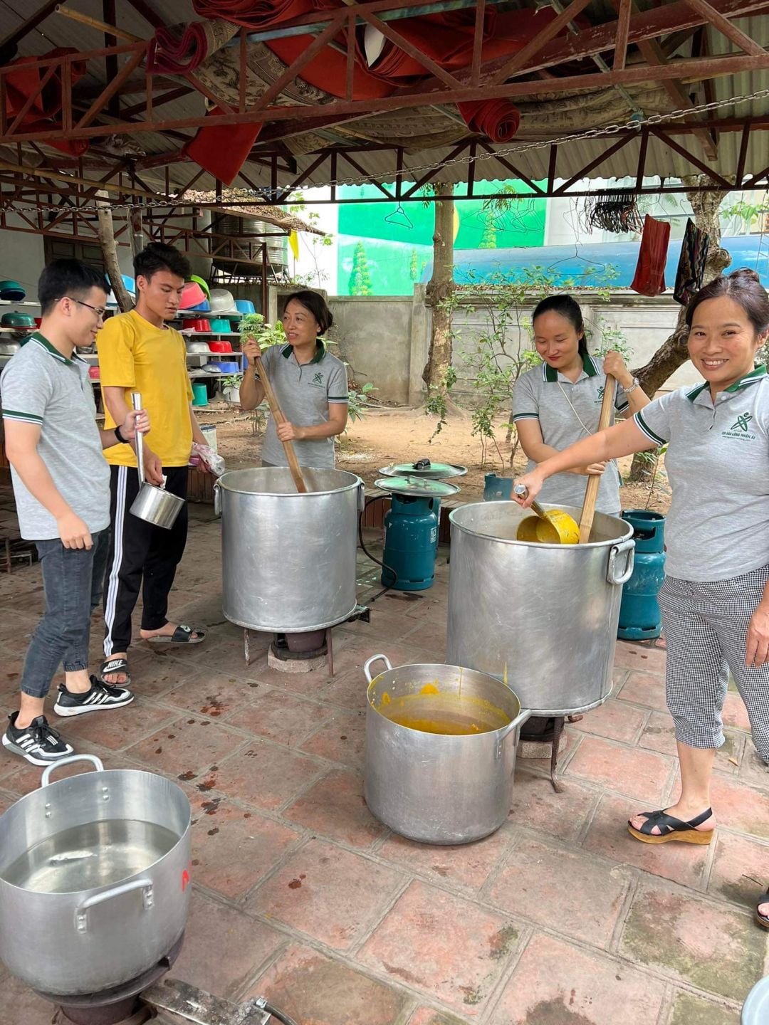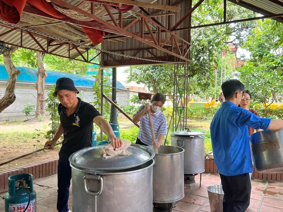 Nắng nóng gần 40 độ nhưng nồi soup vẫn đông đủ các TNV tham gia, soup ngô gà thơm ngon đến giọt cuối cùng.