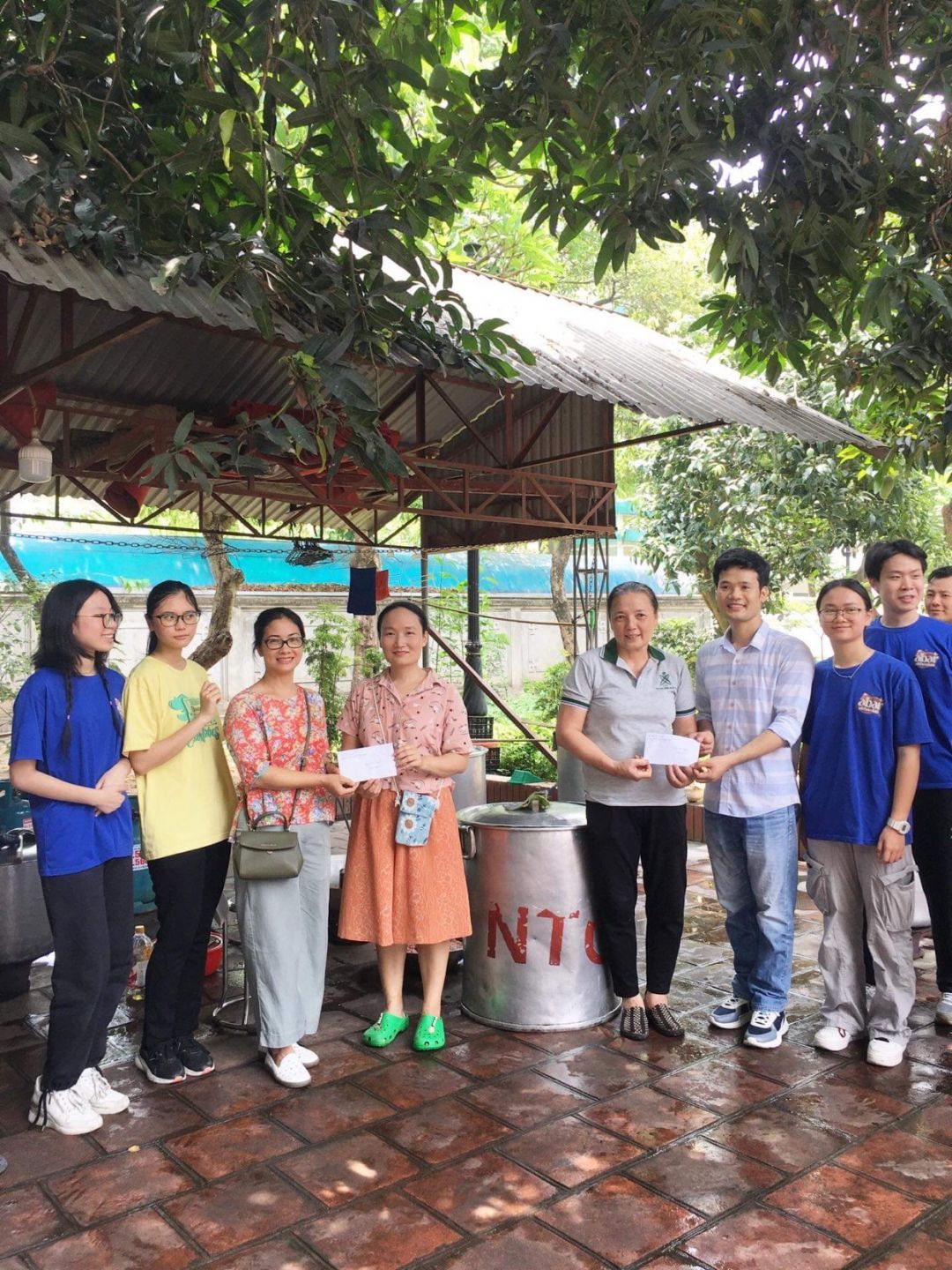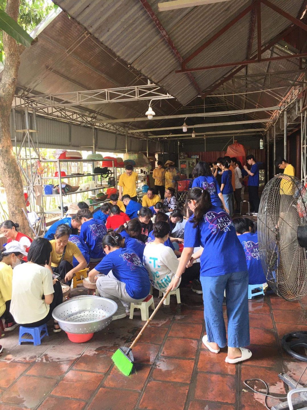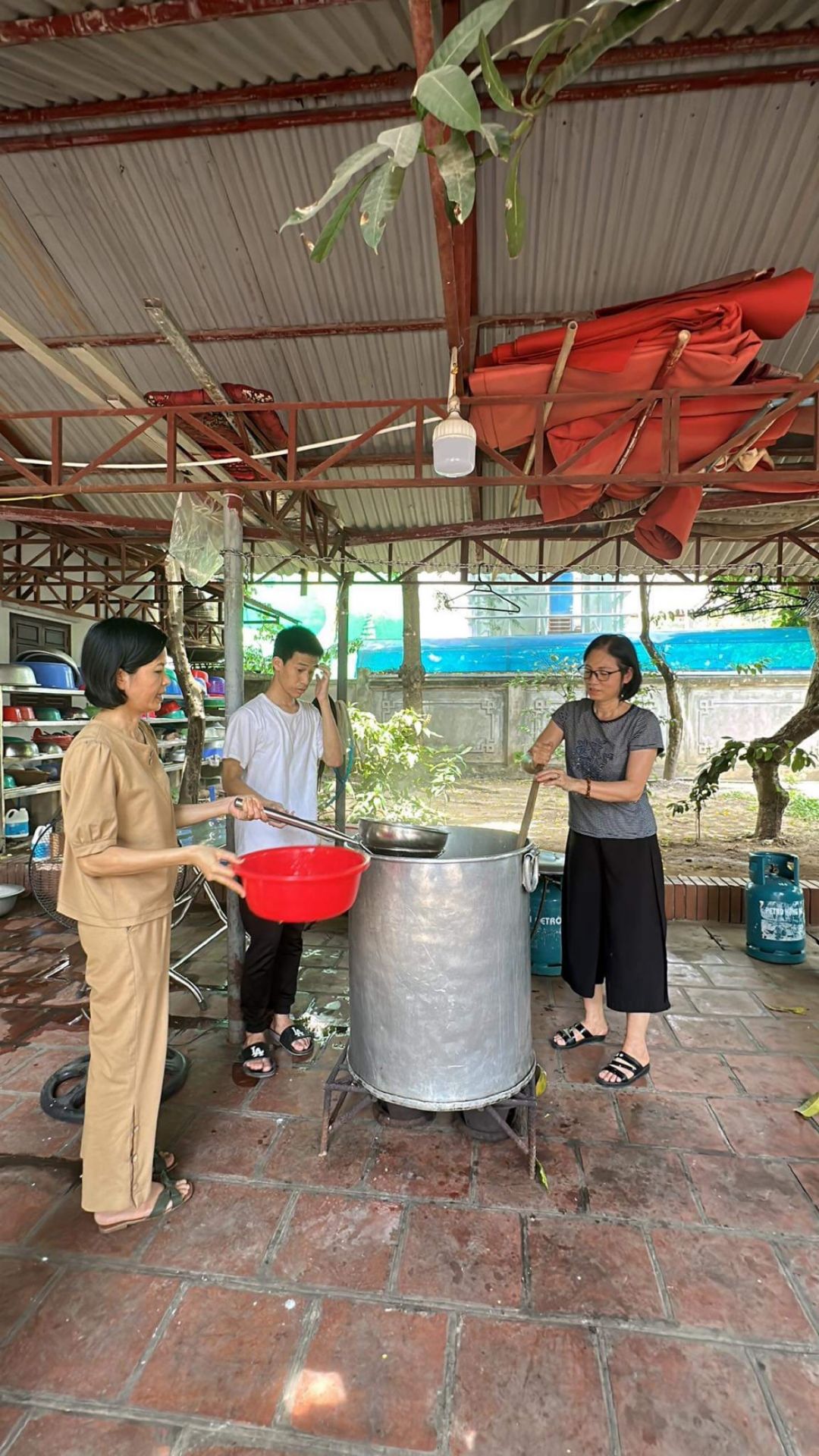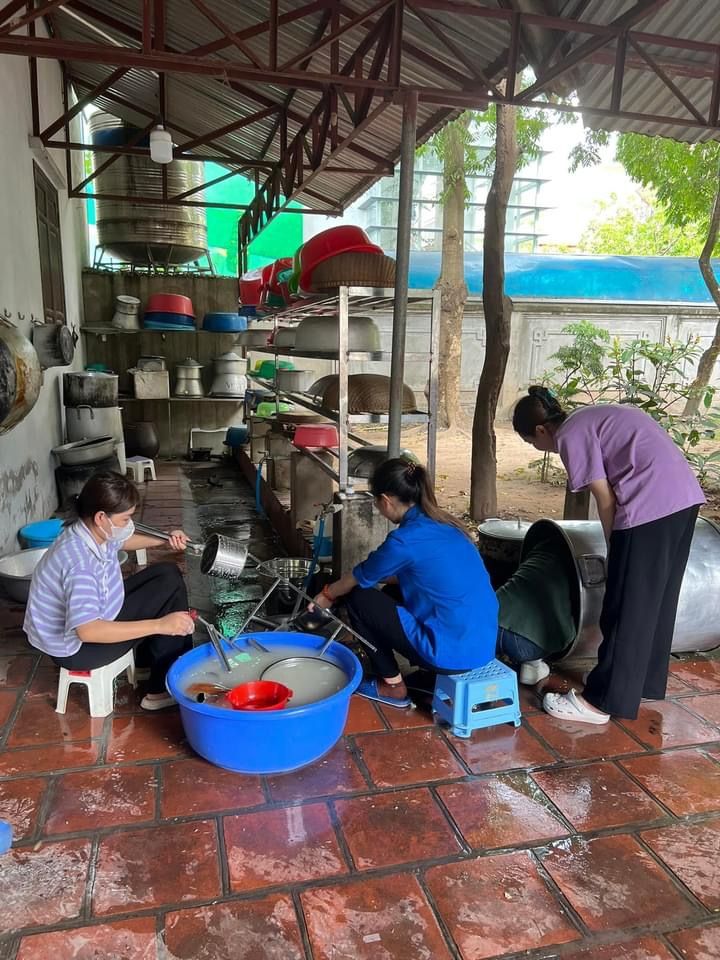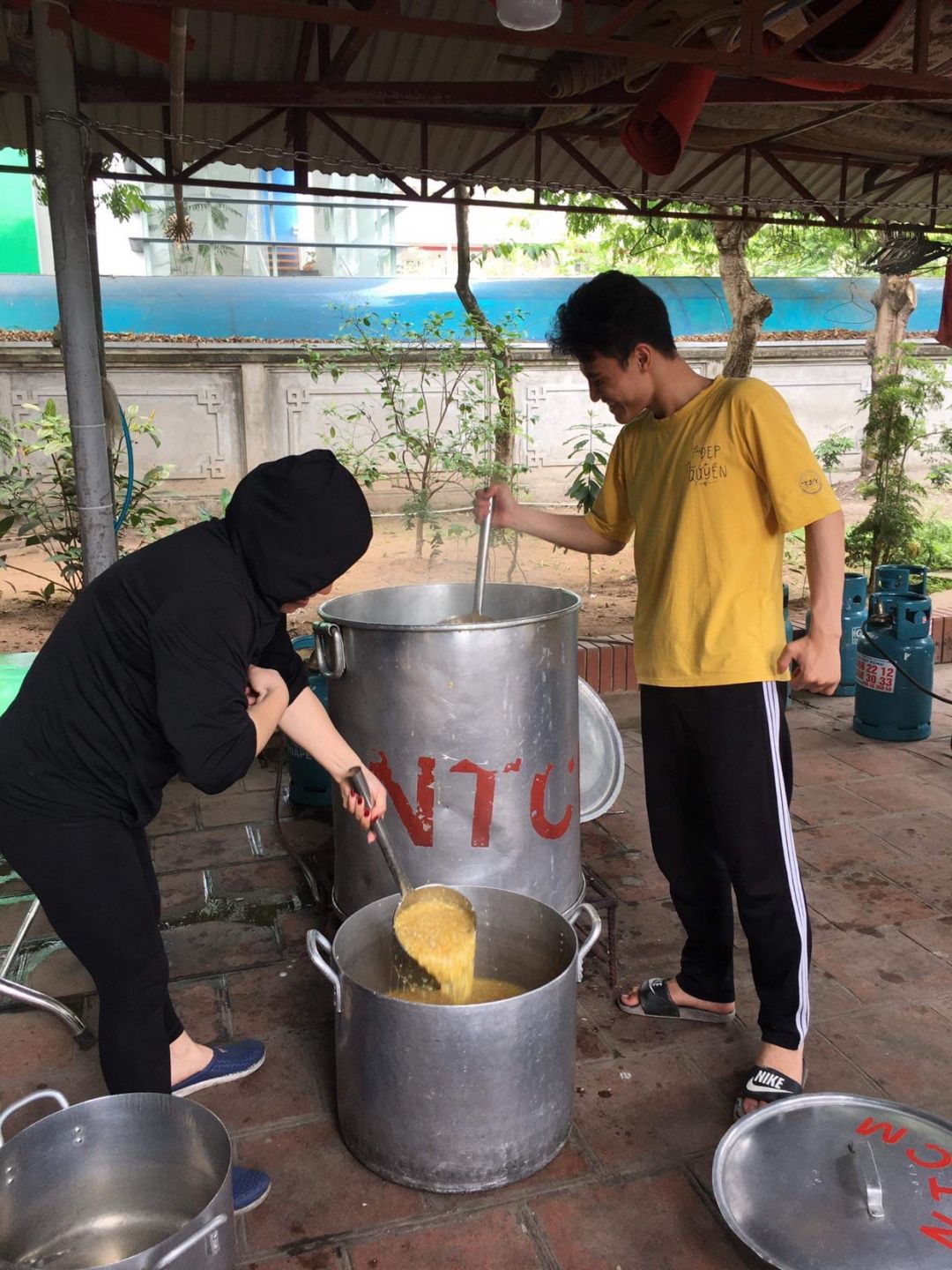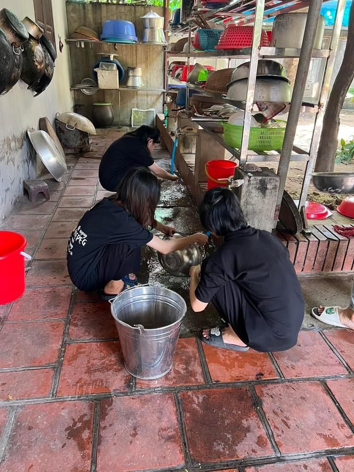 Nắng nóng gần 40 độ nhưng nồi soup vẫn đông đủ các TNV tham gia, soup ngô gà thơm ngon đến giọt cuối cùng.