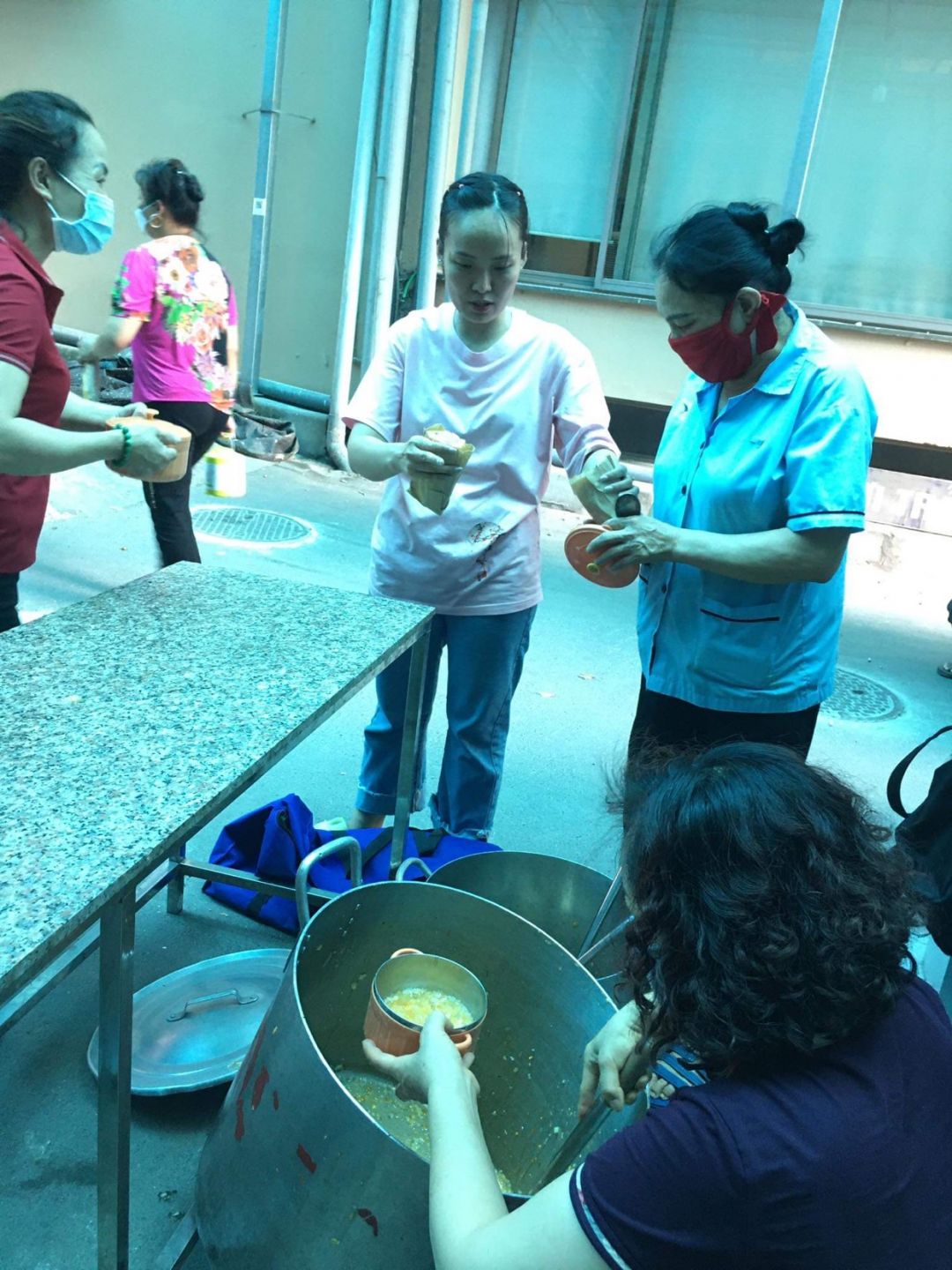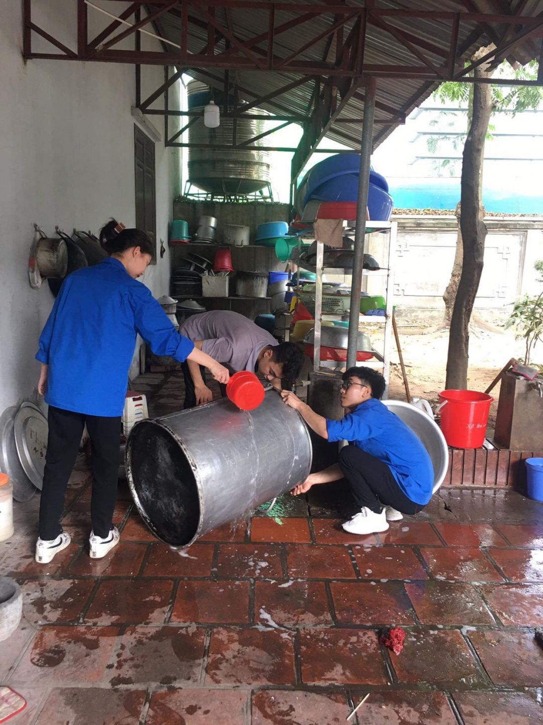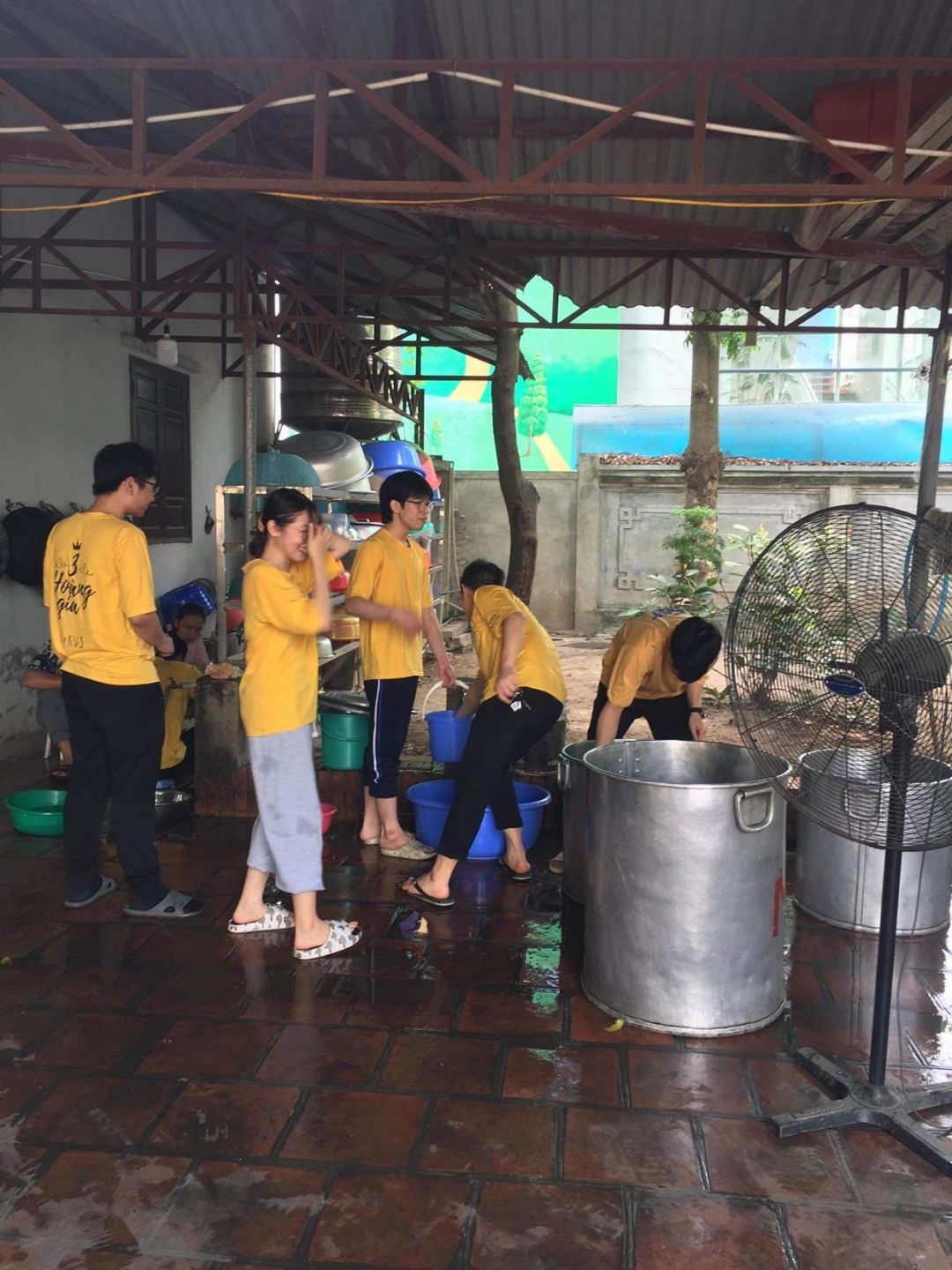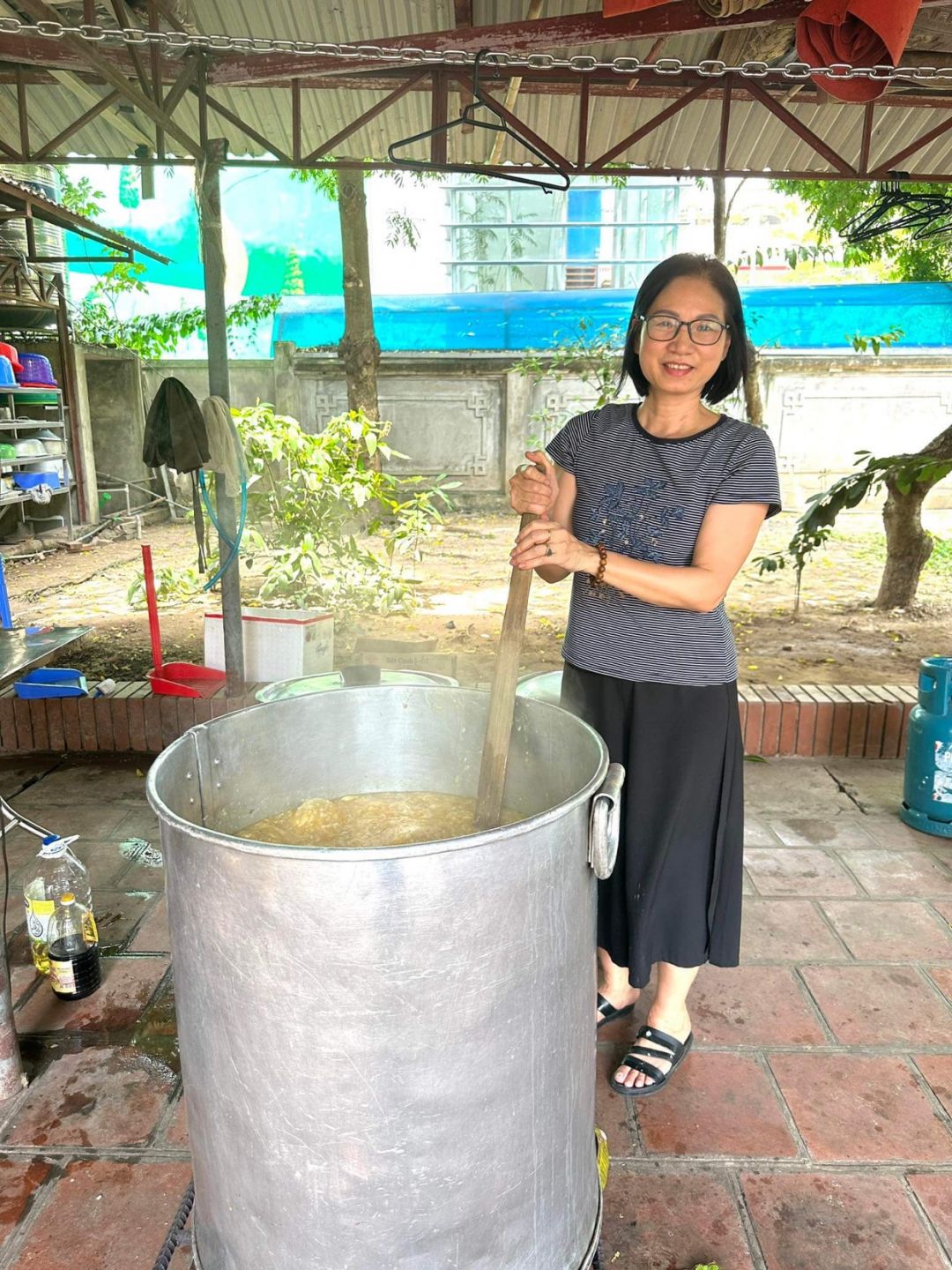 Nắng nóng gần 40 độ nhưng nồi soup vẫn đông đủ các TNV tham gia, soup ngô gà thơm ngon đến giọt cuối cùng.