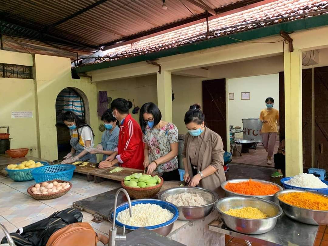 Các bạn lưu ý rửa tay thường xuyên và đeo khẩu trang khi thực hiện phát cơm.