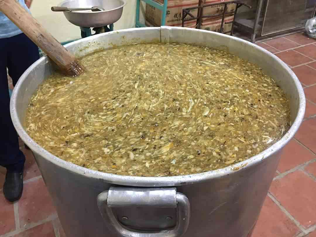 "Hôm nay điều kiện nấu chật chội và thời tiết nóng bức nhân lực hơi vắng nhưng nồi súp vẫn hết 1 nồi đầy và san sang 1 nồi nhỏ mới hết. Phát trong vong 40 phút đã hết veo"