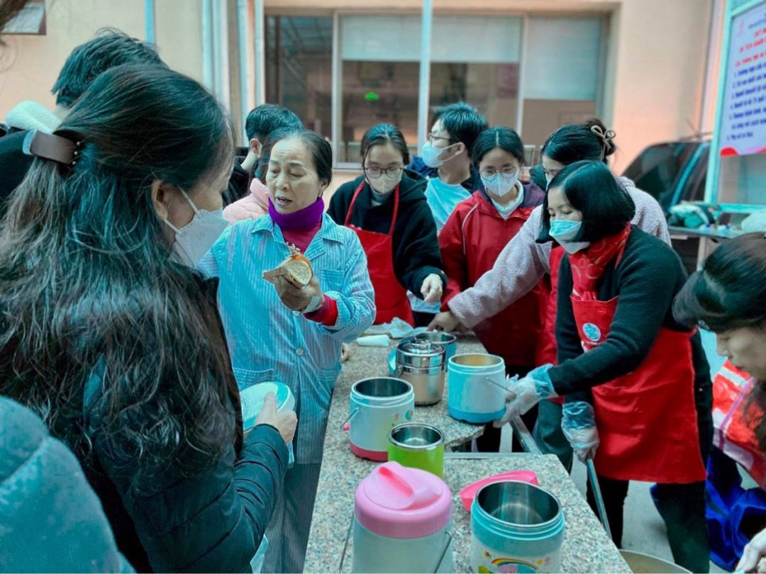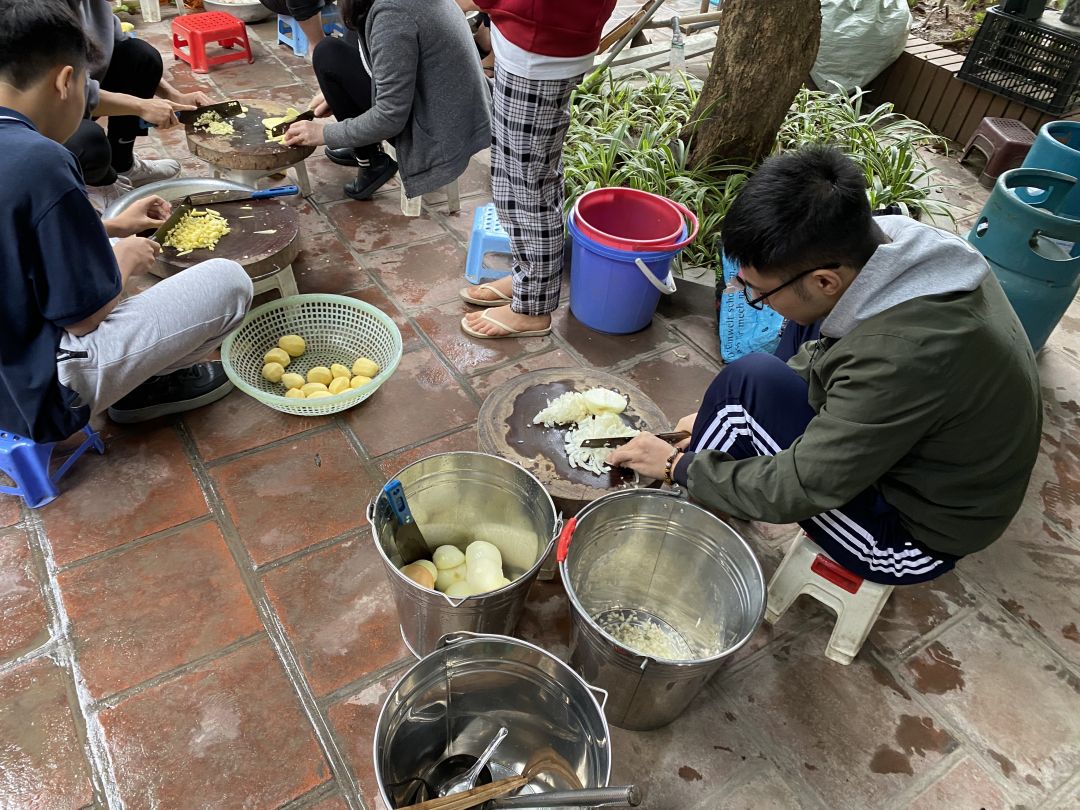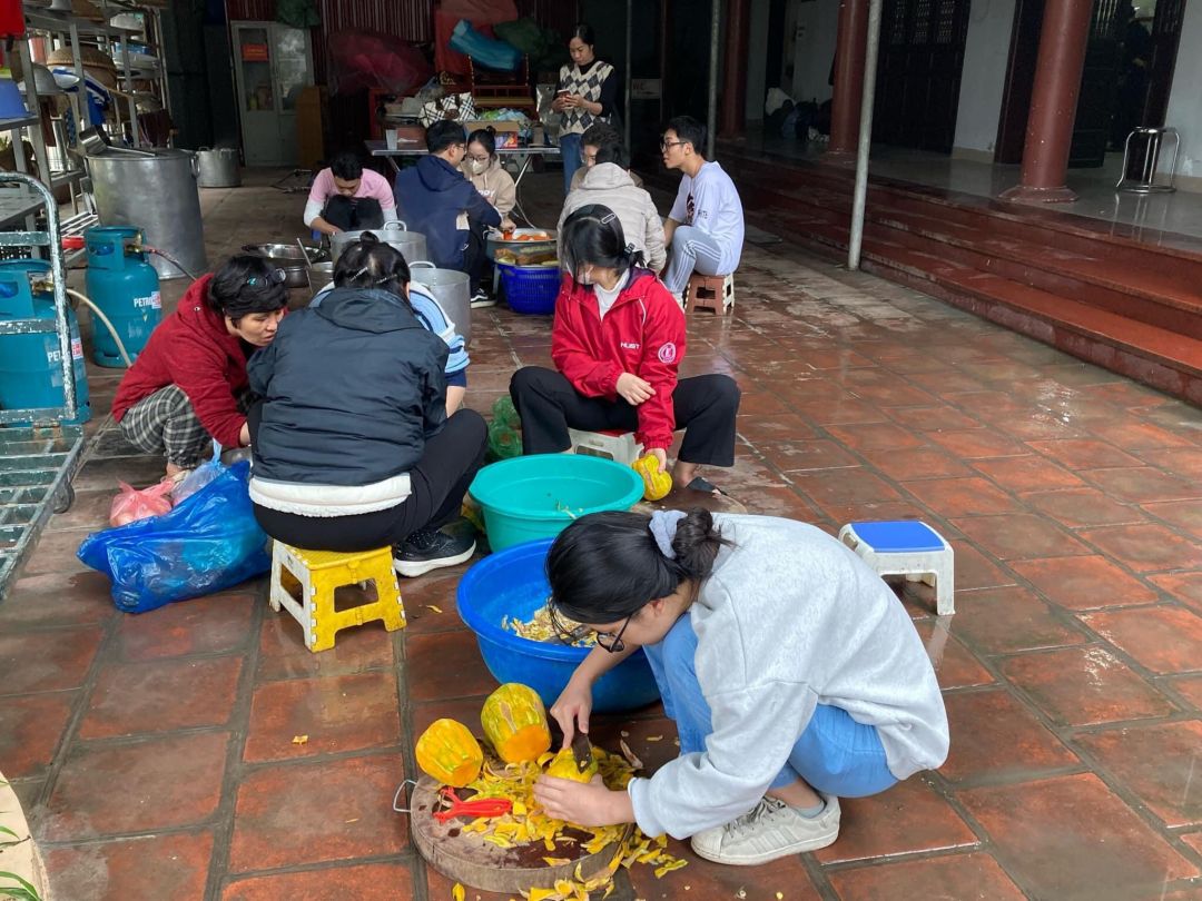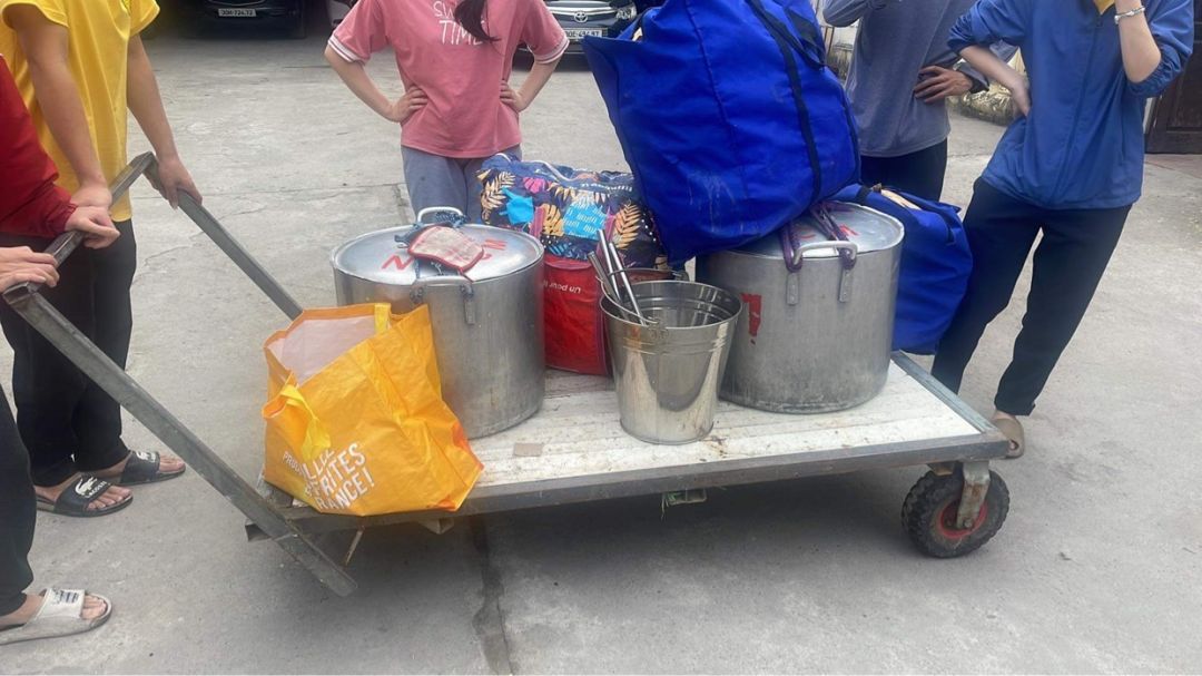💓 Bà Tý chùa Phụng Lộc uh 1 thùng mì tôm, 80 quả trứng gà cho soup và cho bữa trưa.
