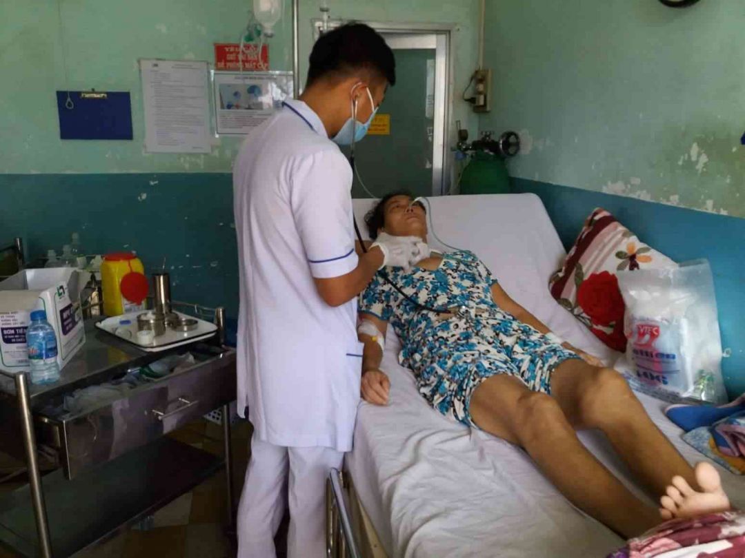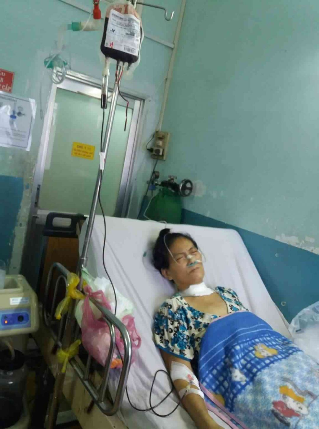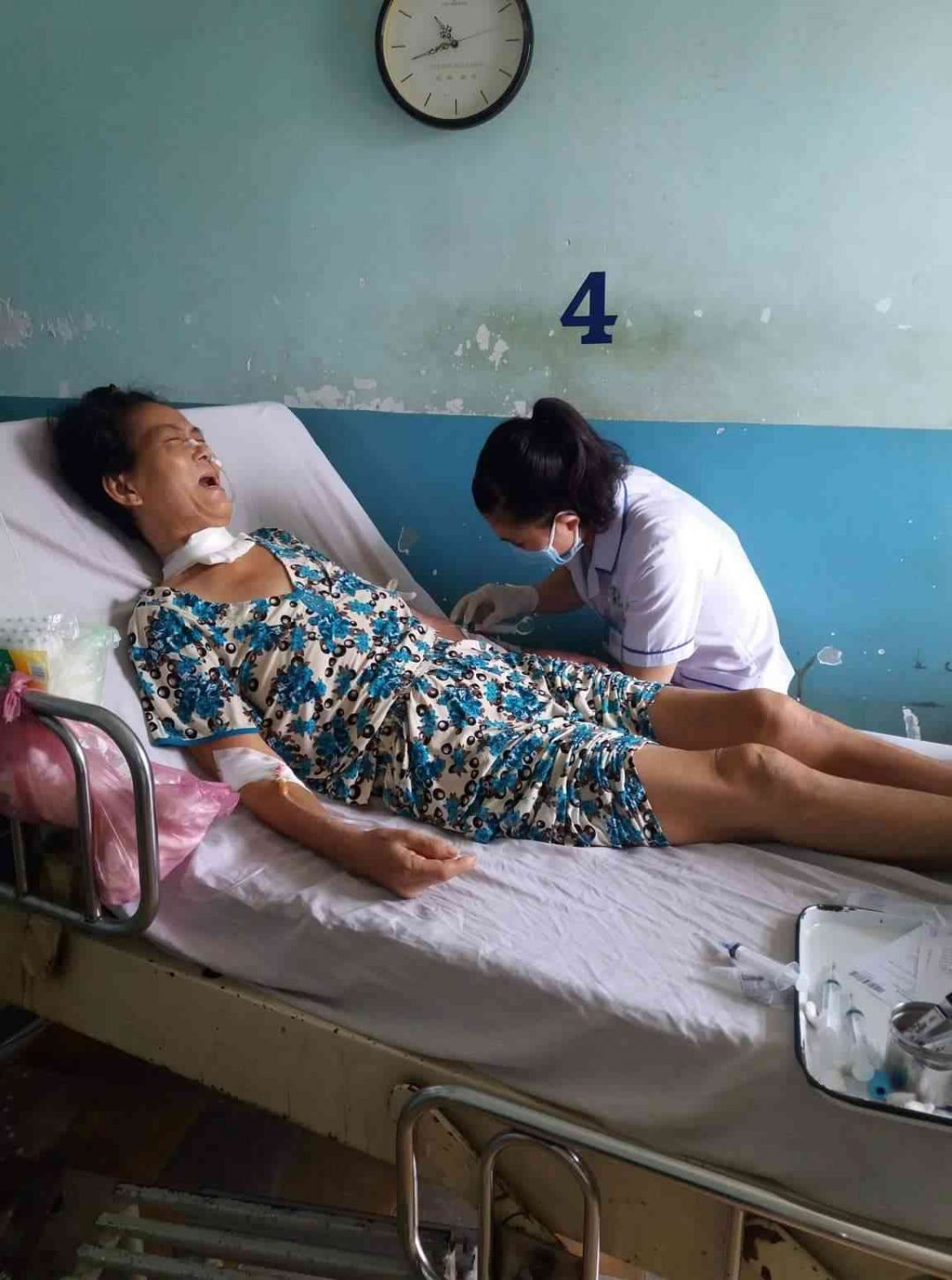 Bác Sĩ khám thấy Mẹ tuột huyết áp và tuột canxi luôn,Mẹ con mệt lắm,nên Bác Sĩ kêu cô điều dưỡng đến bơm thuốc tan đàm với canxi vô liền cho Mẹ con.
