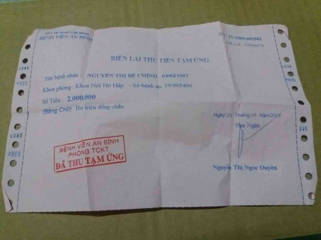 Dạ,con xin gửi lời cảm ơn đến cô chú ,cũng nhờ cô chú đã xem và giúp đỡ chi phí cho Mẹ con,nên bữa giờ con đã đóng tạm ứng cho Mẹ được 3 lần rồi ạ.