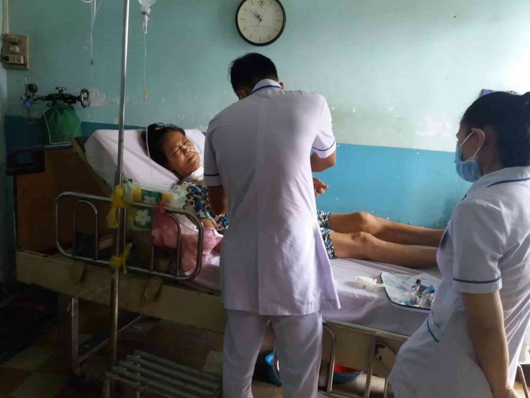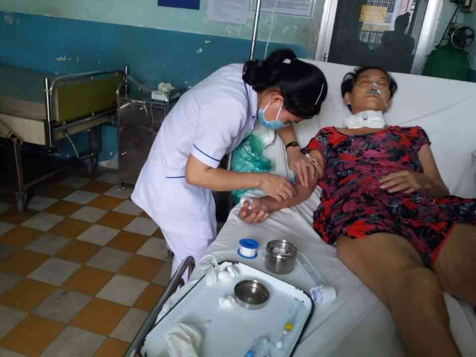 Bác Sĩ khám thấy Mẹ tuột huyết áp và tuột canxi luôn,Mẹ con mệt lắm,nên Bác Sĩ kêu cô điều dưỡng đến bơm thuốc tan đàm với canxi vô liền cho Mẹ con.