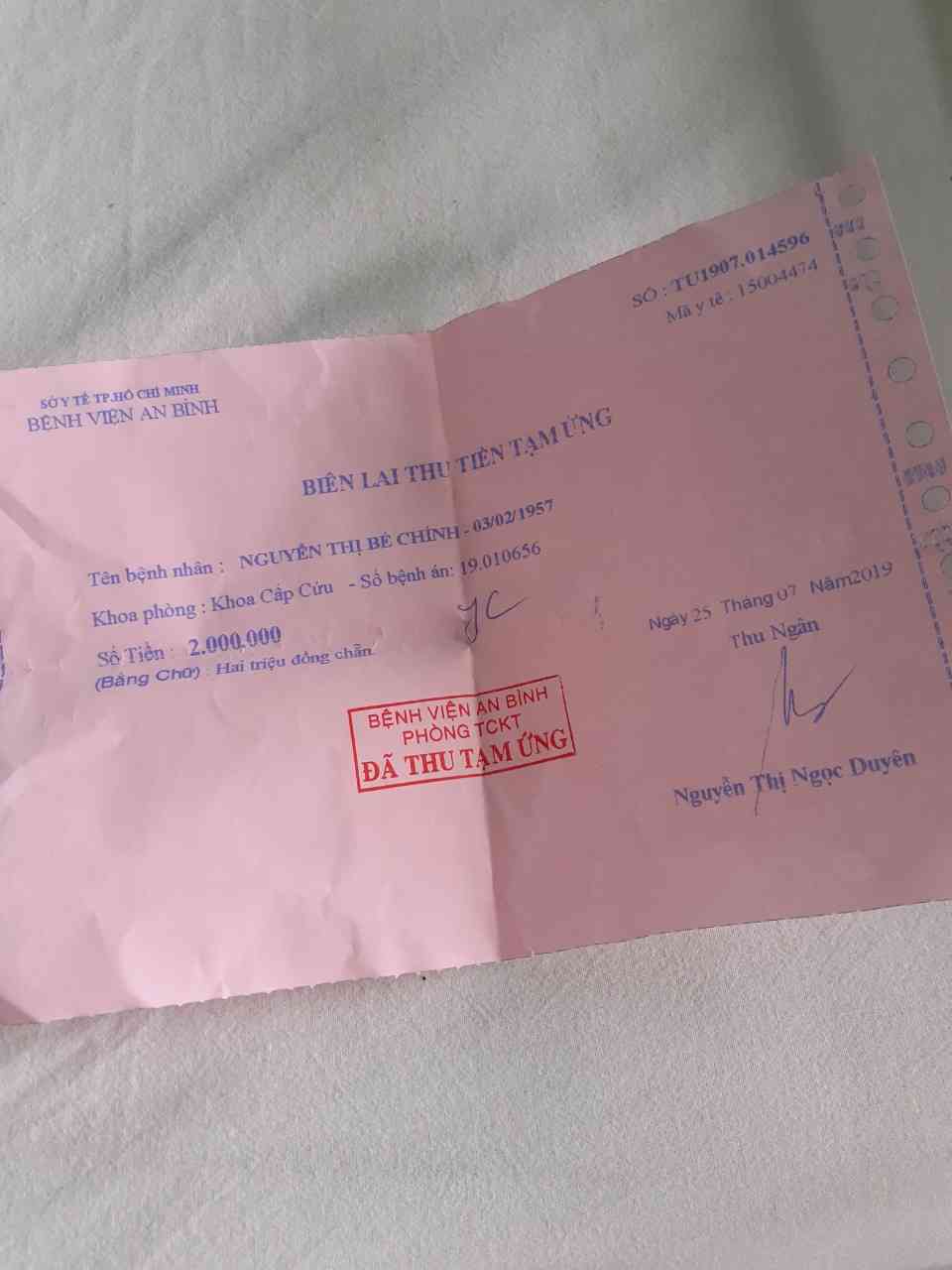 Dạ,hồi trưa con đưa Mẹ vô làm giấy tờ nhập viện và người ta có kêu người nhà đóng liền tạm ứng 2 triệu,do Mẹ tái phát bệnh đột ngột nên tụi con chạy vay mượn tiền ko có nên trong nhà chỉ còn chiếc xe honda của chồng con đi làm hàng ngày ,để đem cầm cố được 1.500triệu và ráng chạy thêm vài trăm nữa cho đủ để lo đóng viện phí cho Mẹ trước.Dạ con kính thưa cô chú a chị xem và chung tay chia sẻ giúp đỡ thêm phần nào chi phí chữa trị cho bệnh tình của Mẹ con hiện giờ ạ,và có thêm chút chi phí cho con được chuột chiếc xe honđa để có phương tiện để đi làm ạ,con rất mong cô chú a chị chia sẻ và giúp cho gia đình con sớm vượt qua giai đoạn khó khăn này,con xin chân thành Cảm ơn cô chú a chị.