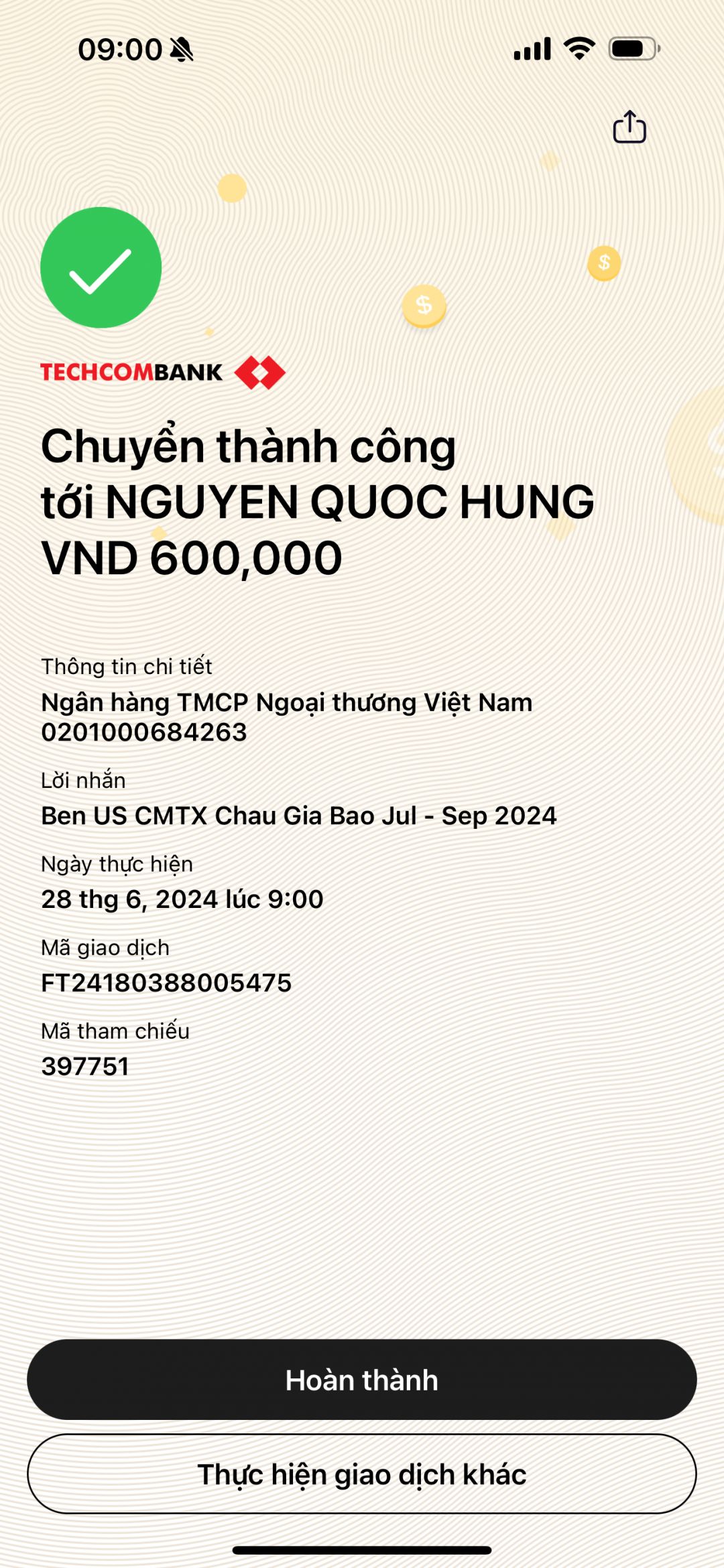 Chú Ben gửi CMTX Quý 3/2024 (7-9/2024) nhé anh LNLB. Nhờ anh chuyển tiếp và thăm hỏi cháu ạ!