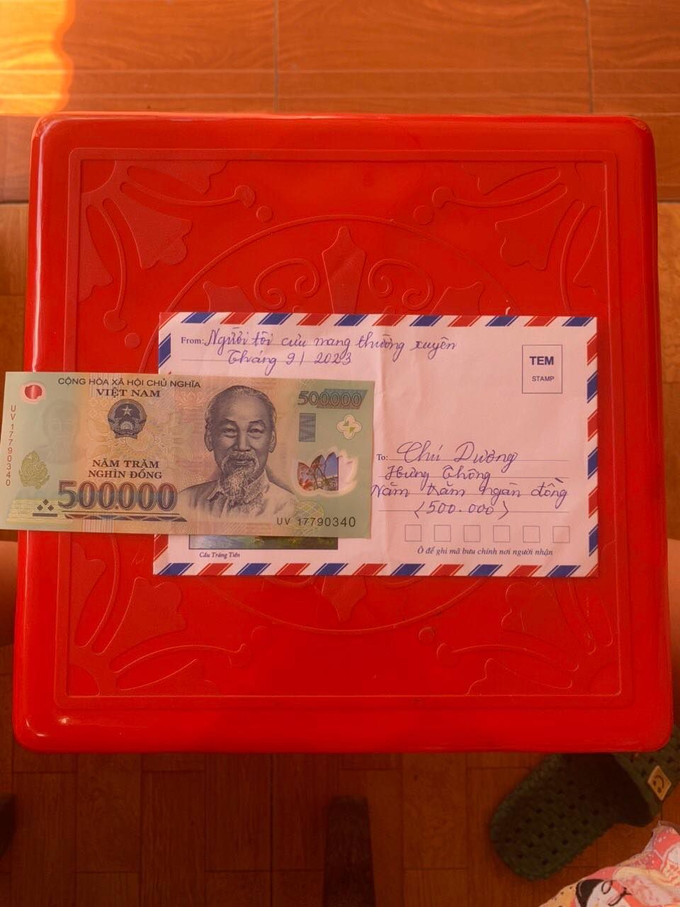 Chào cả nhà, con xin cập nhật hình ảnh trao CMTX hoàn cảnh chú Dương tháng 10/2023 số tiền 500.000 đồng. Cảm ơn cả nhà