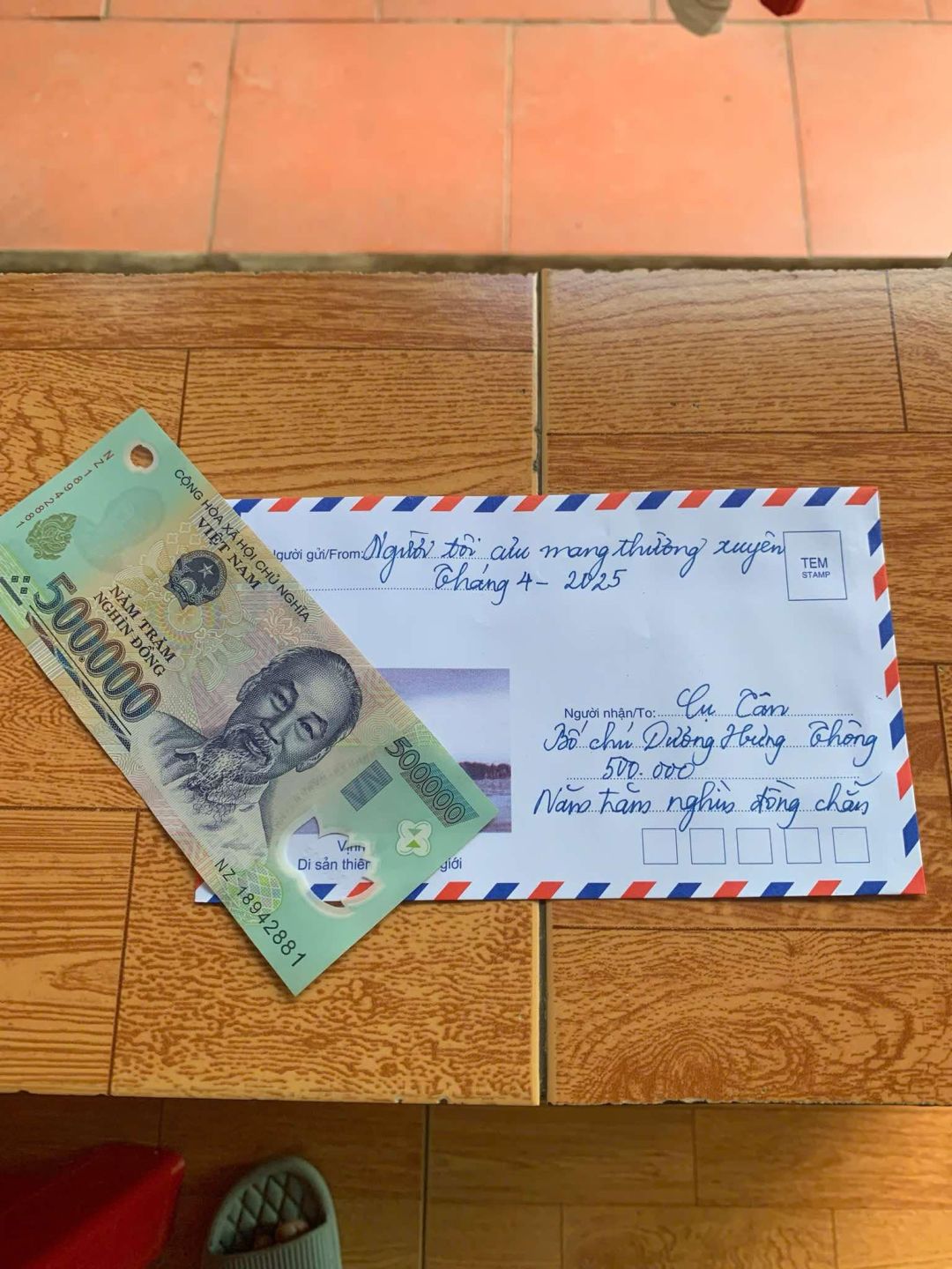 Chào cả nhà, Alexander xin cập nhật hình ảnh trao CMTX hoàn cảnh ông Tân thánh 2/2025 số tiền 500.000 đồng. Cảm ơn cả nhà
